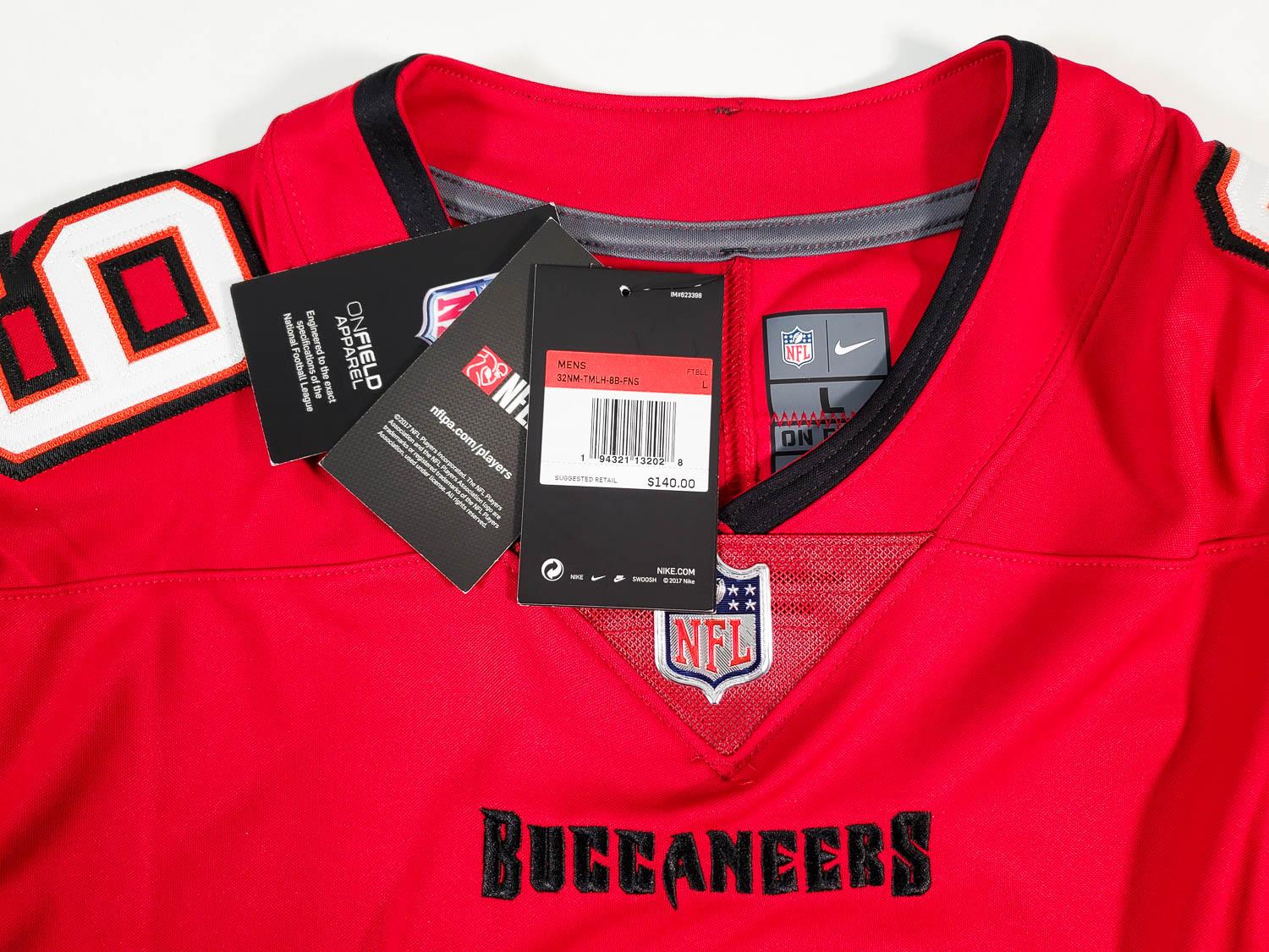 This autographed Nike jersey has been personally hand-signed by Emeka Egbuka of the Tampa Bay Buccaneers. This autograph is certified by Fanatics. It comes with the numbered hologram which can be verified on Fanatics.com.