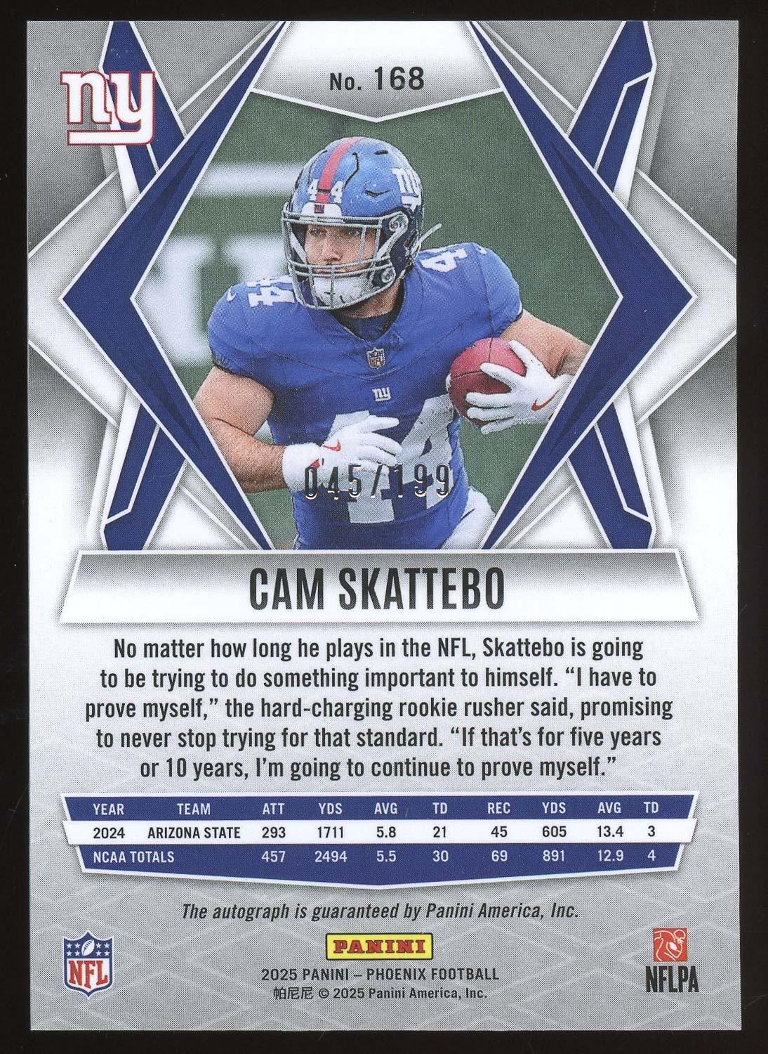 Cam Skattebo 2024 Panini Phoenix Autograph Rookie Card 45/199!