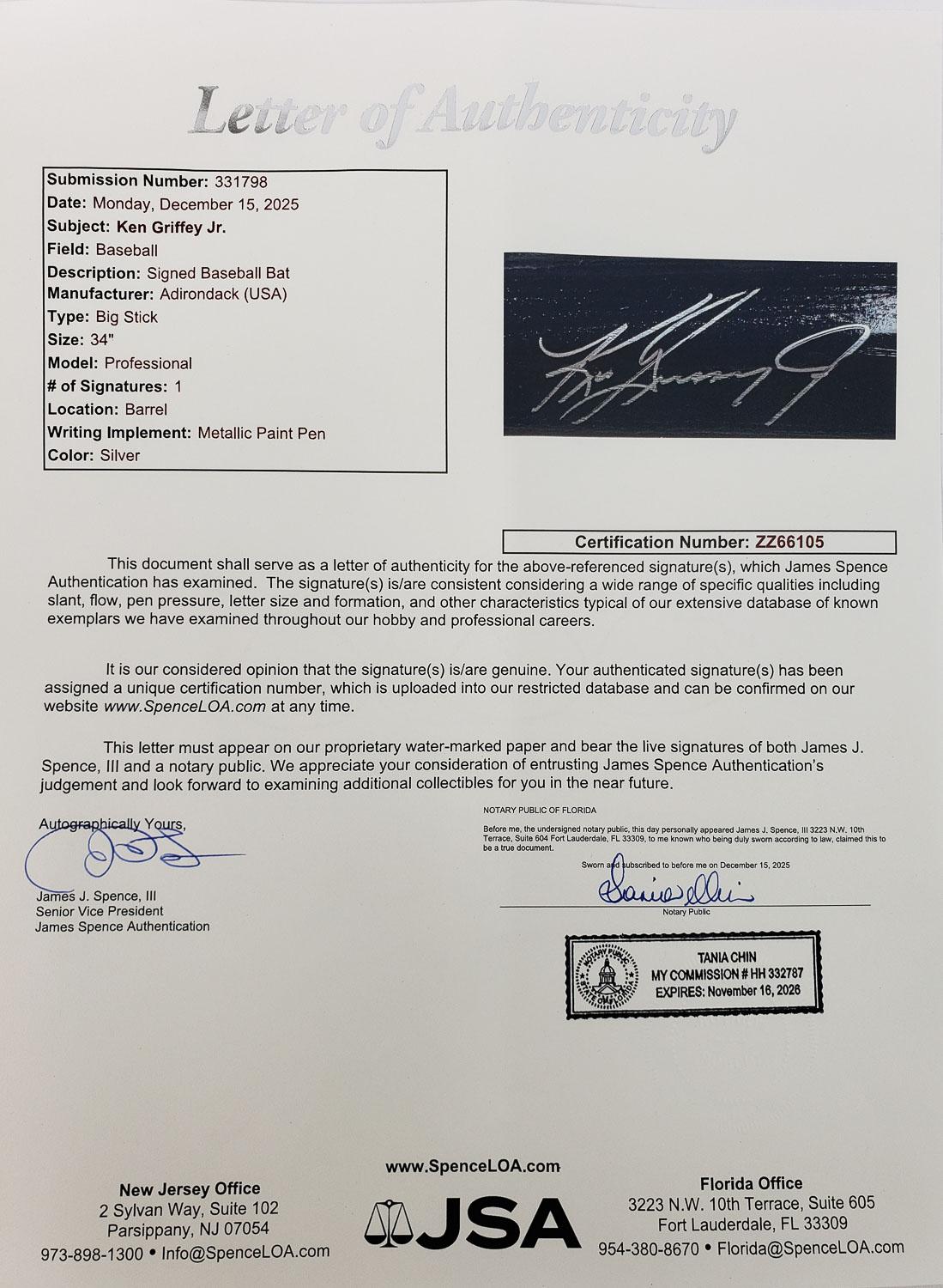 Ken Griffey Jr. Signed Rawlings Adirondack Big Stick Player Model Baseball Bat (JSA LOA)
