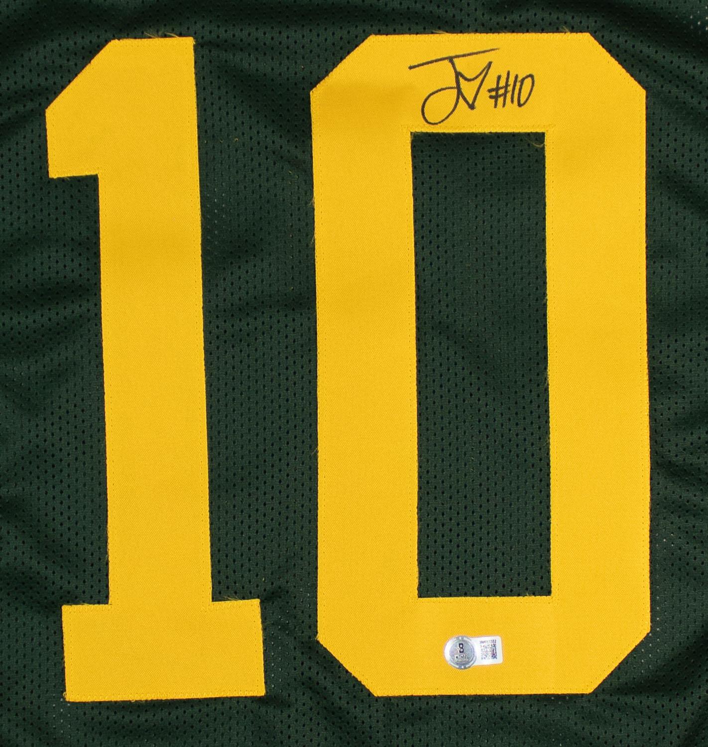 This autographed jersey has been personally hand-signed by Jordan Love of the Green Bay Packers. This autograph is certified by Beckett Authentication Services (BAS) Witness Certification. That means that a Beckett representative was present when this item was signed. It comes with the numbered authentication hologram with a QR code that verifies the authentication on the Beckett website.