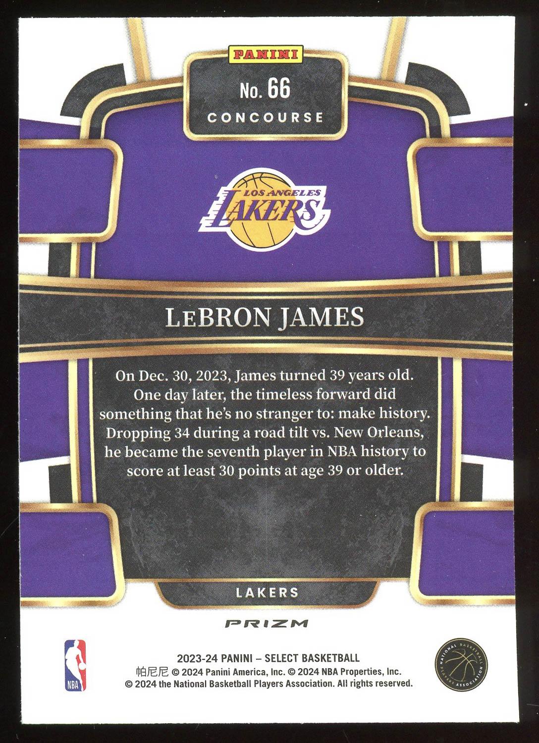 LeBron James 2023 Panini Select Tiger Prizm Card #66. Please see pictures for details on the condition of this card.