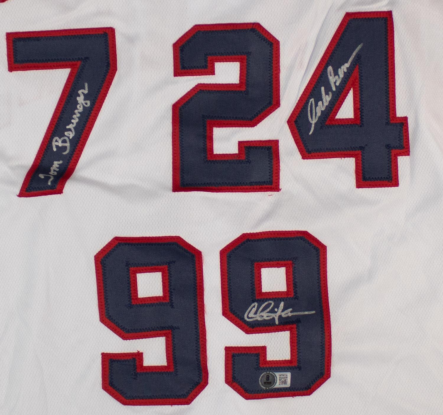 This autographed jersey has been personally hand-signed by Charlie Sheen, Tom Berenger & Corbin Bernsen from Major League. This autograph is certified by Beckett Authentication Services (BAS) Witness Certification. That means that a Beckett representative was present when this item was signed. It comes with the numbered authentication hologram with a QR code that verifies the authentication on the Beckett website.