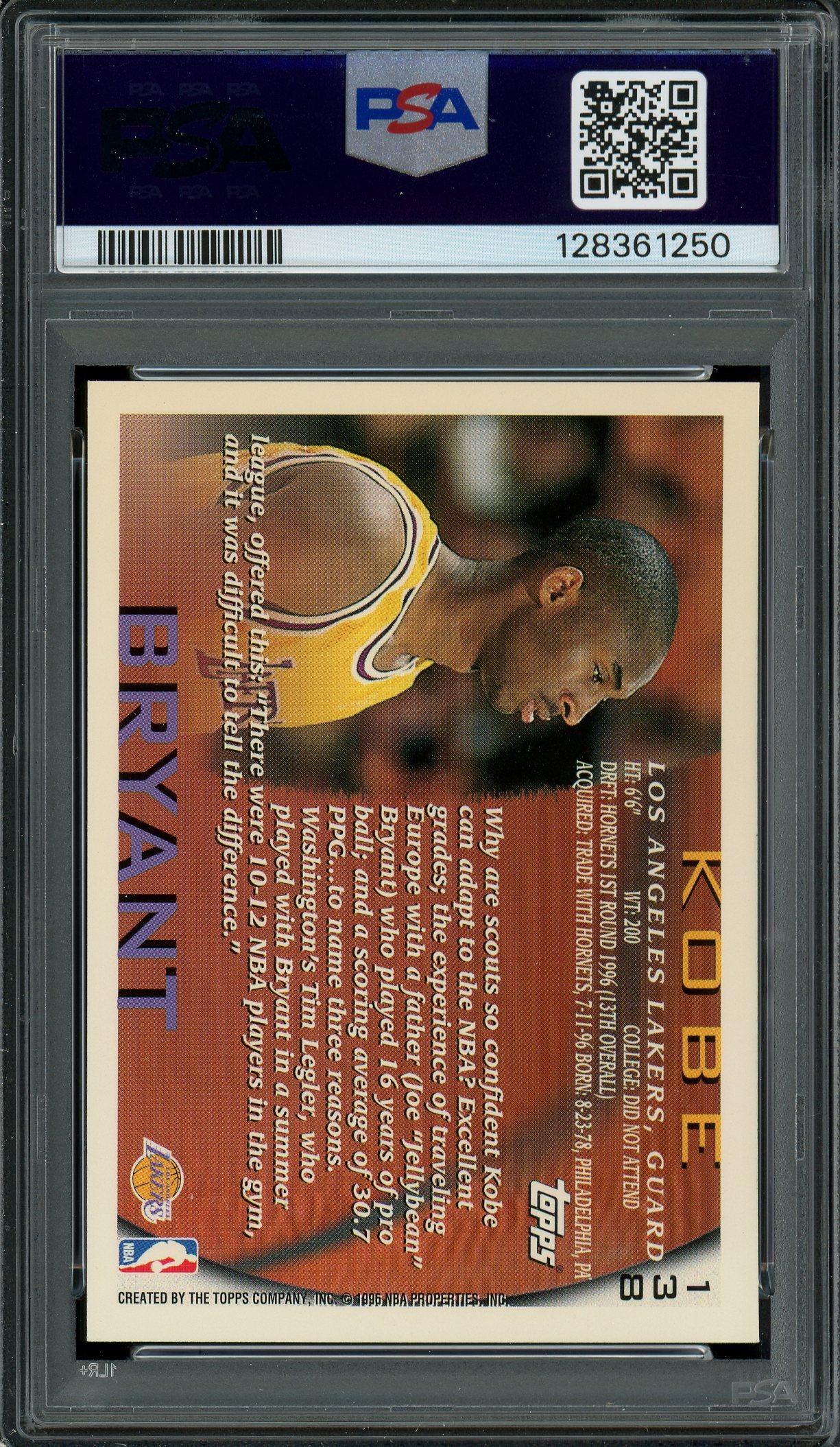 Kobe Bryant 1996 Topps Rookie Card #138 PSA 9