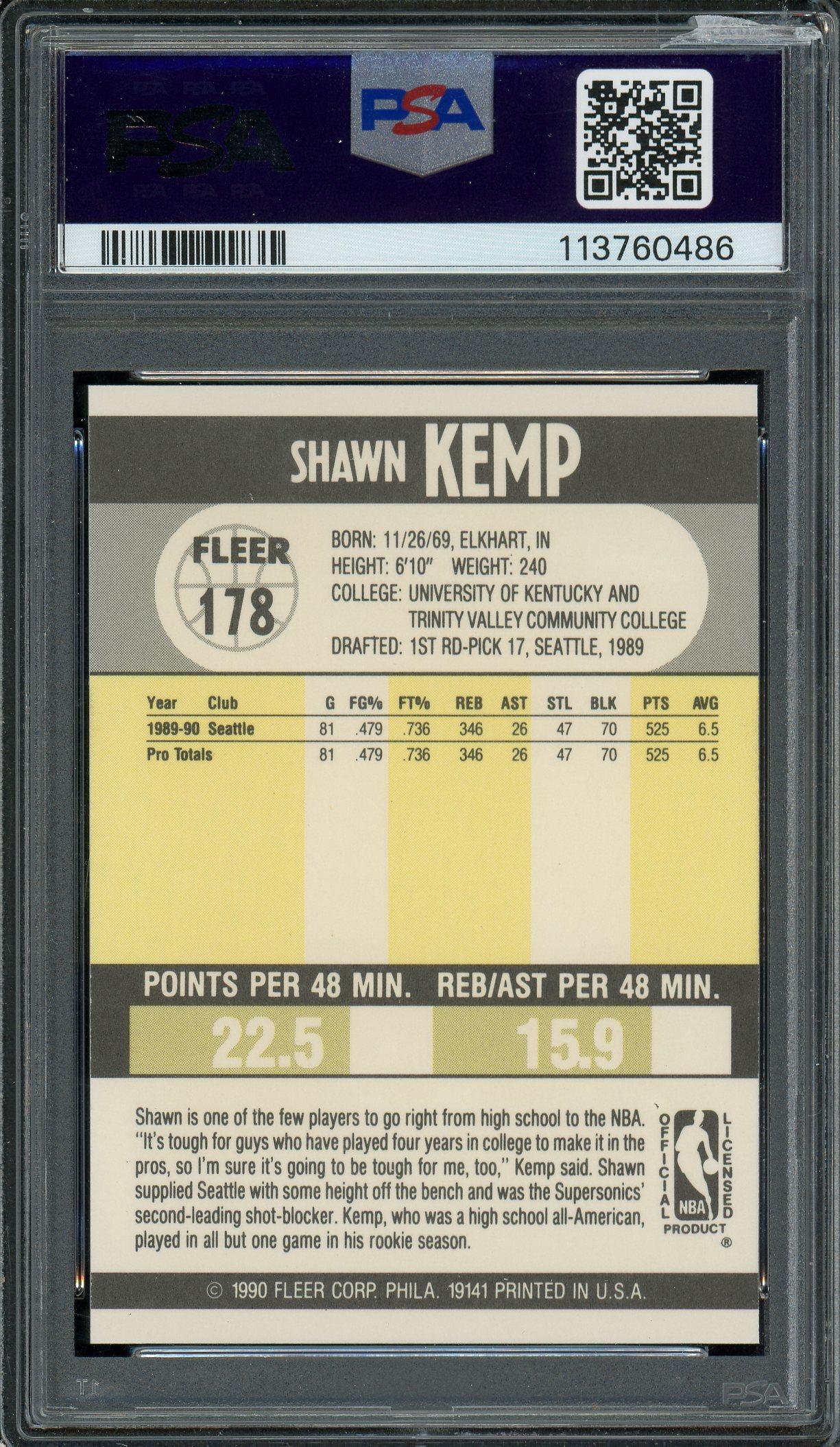 Shawn Kemp 1990 Fleer Rookie Card #178 PSA Gem Mint 10!