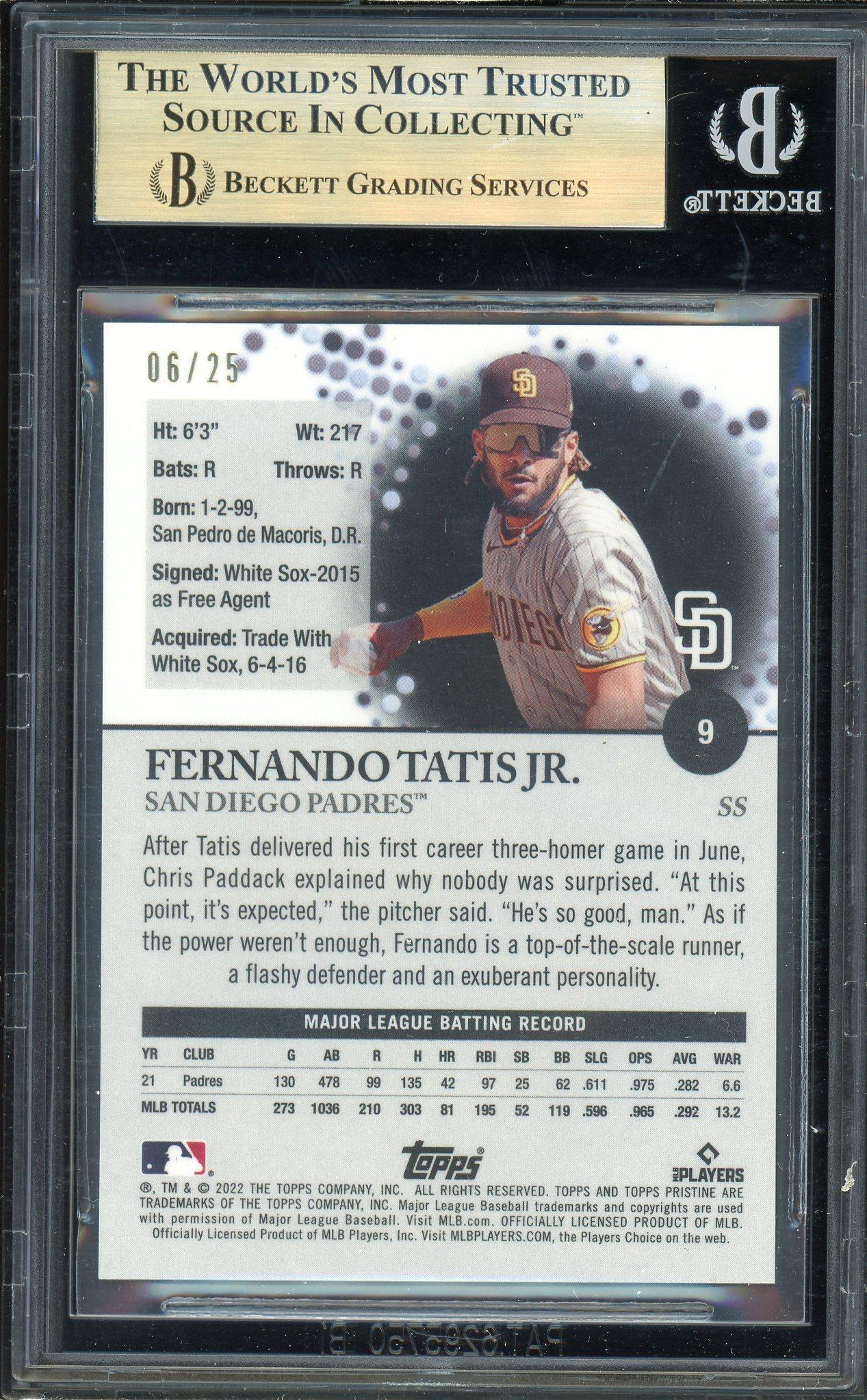 Fernando Tatis Jr. 2022 Topps Pristine Orange Refractors Card 6/25! BGS True Gem Mint 9.5 Plus POP 1!