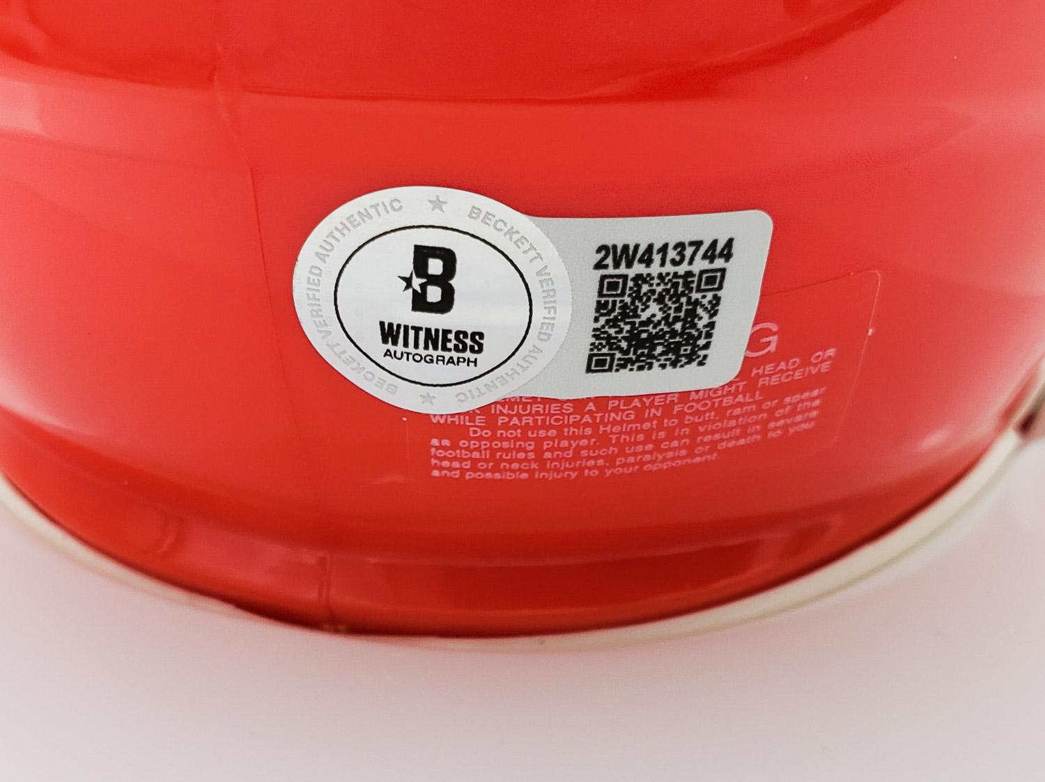 This autographed Riddell Speed mini helmet has been personally hand-signed by Colston Loveland of the Chicago Bears. This autograph is certified by Beckett Authentication Services (BAS) Witness Certification. That means that a Beckett representative was present when this item was signed. It comes with the numbered authentication hologram with a QR code that verifies the authentication on the Beckett website. Stock images are used for this listing. The item you will receive will be of equal quality to the one pictured. The signature location may vary slightly.