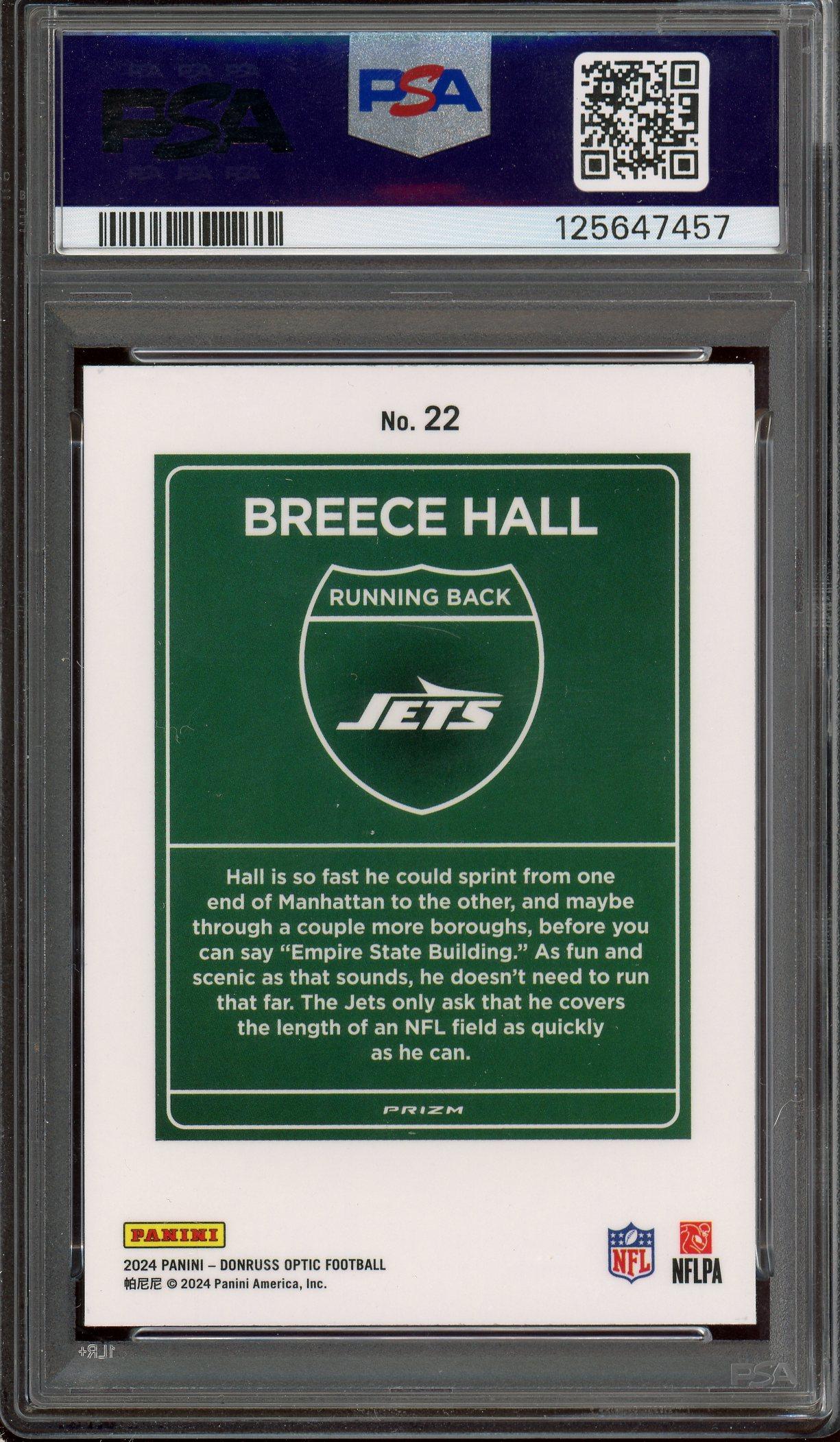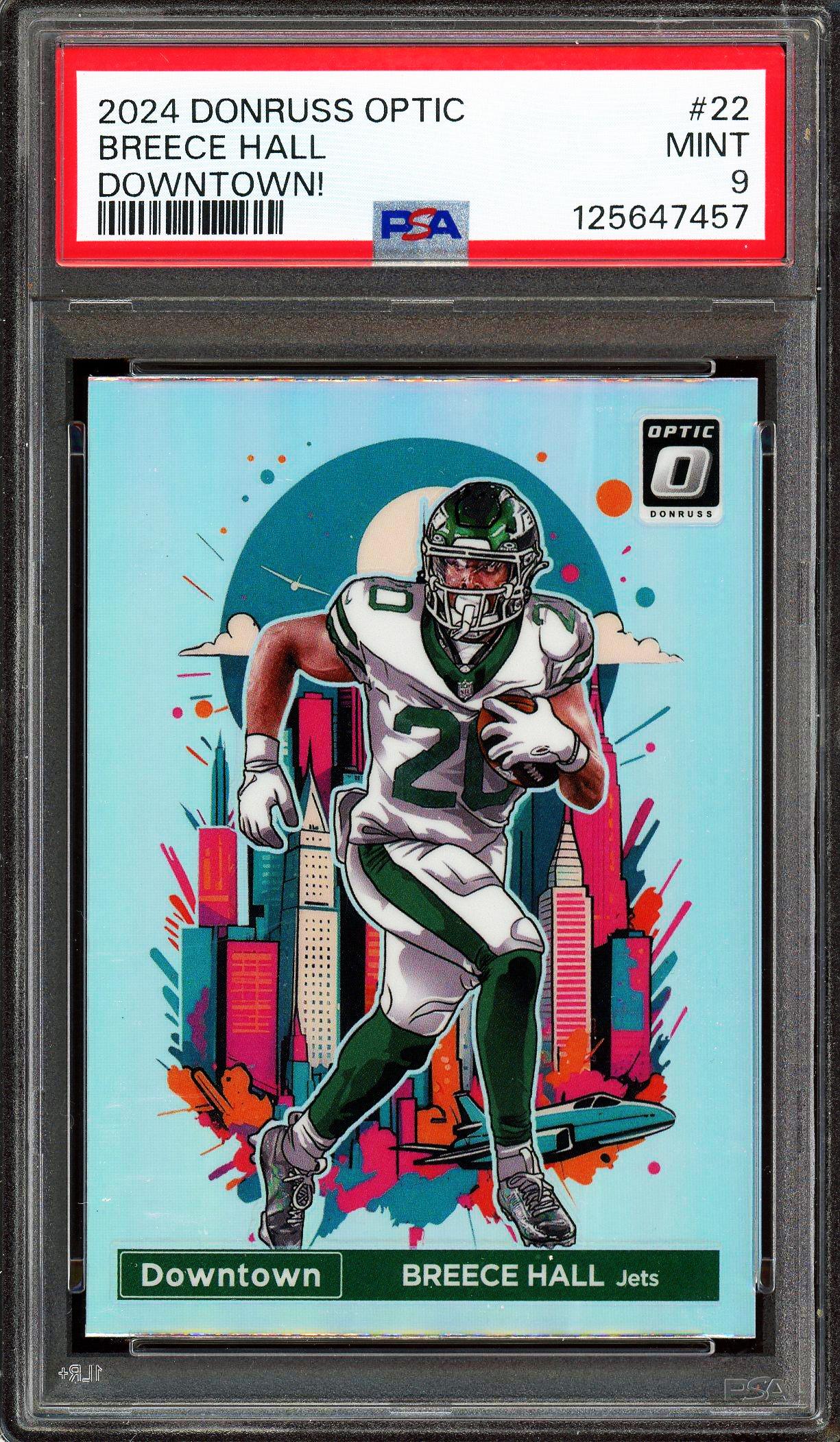 Breece Hall 2024 Donruss Optic Downtown Case Hit Card PSA 9