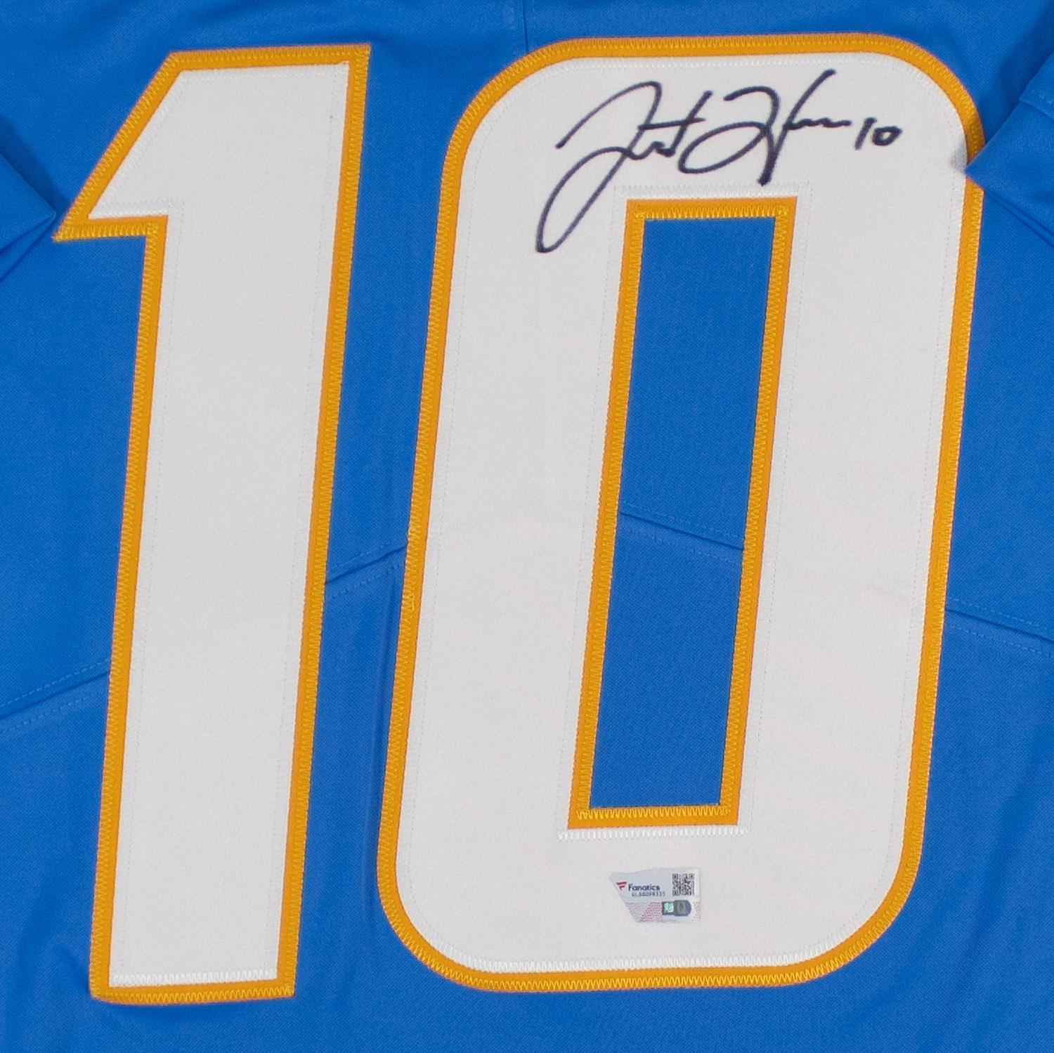 This autographed jersey has been personally hand-signed by Justin Herbert of the Los Angeles Chargers. This autograph is certified by Fanatics. It comes with the numbered hologram which can be verified on Fanatics.com.