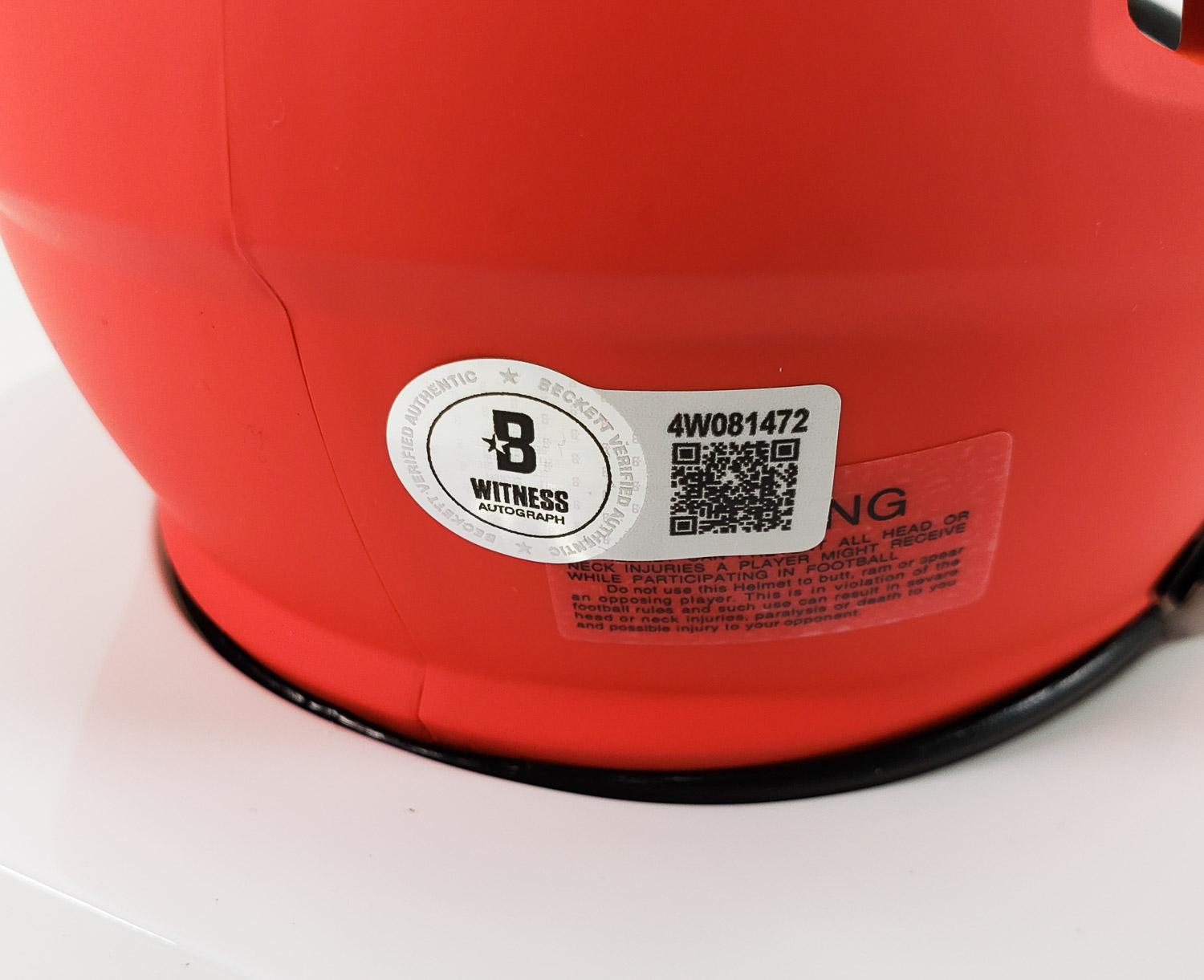 This autographed Riddell Speed mini helmet has been personally hand-signed by Colston Loveland of the Chicago Bears. This autograph is certified by Beckett Authentication Services (BAS) Witness Certification. That means that a Beckett representative was present when this item was signed. It comes with the numbered authentication hologram with a QR code that verifies the authentication on the Beckett website. Stock images are used for this listing. The item you will receive will be of equal quality to the one pictured. The signature location may vary slightly.