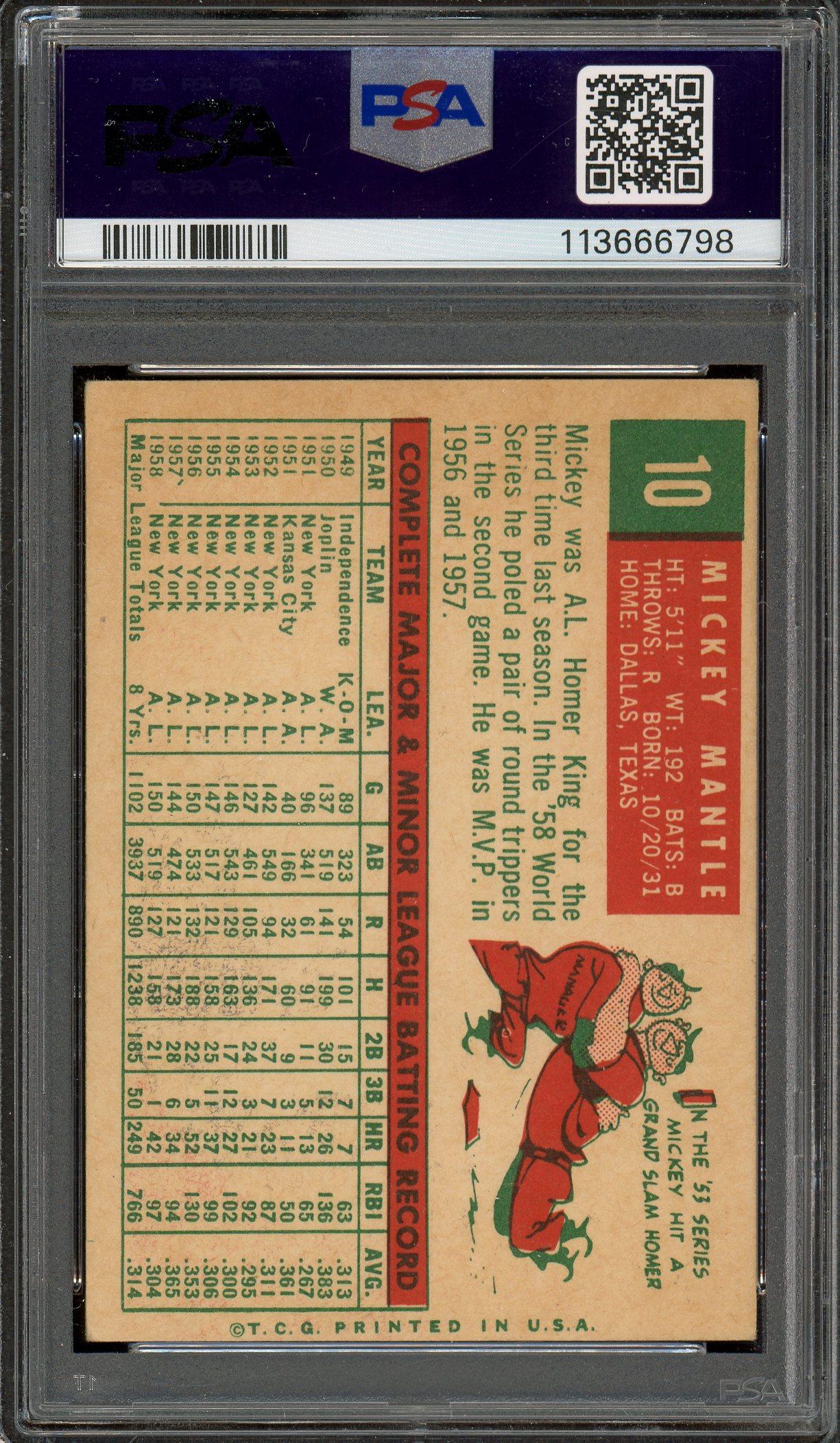 Mickey Mantle 1959 Topps Card #10 PSA 4