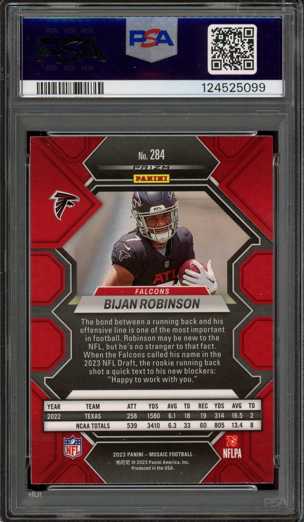 Bijan Robinson 2023 Panini Mosaic Honeycomb Rookie Card #284 PSA Gem Mint 10 POP 21!