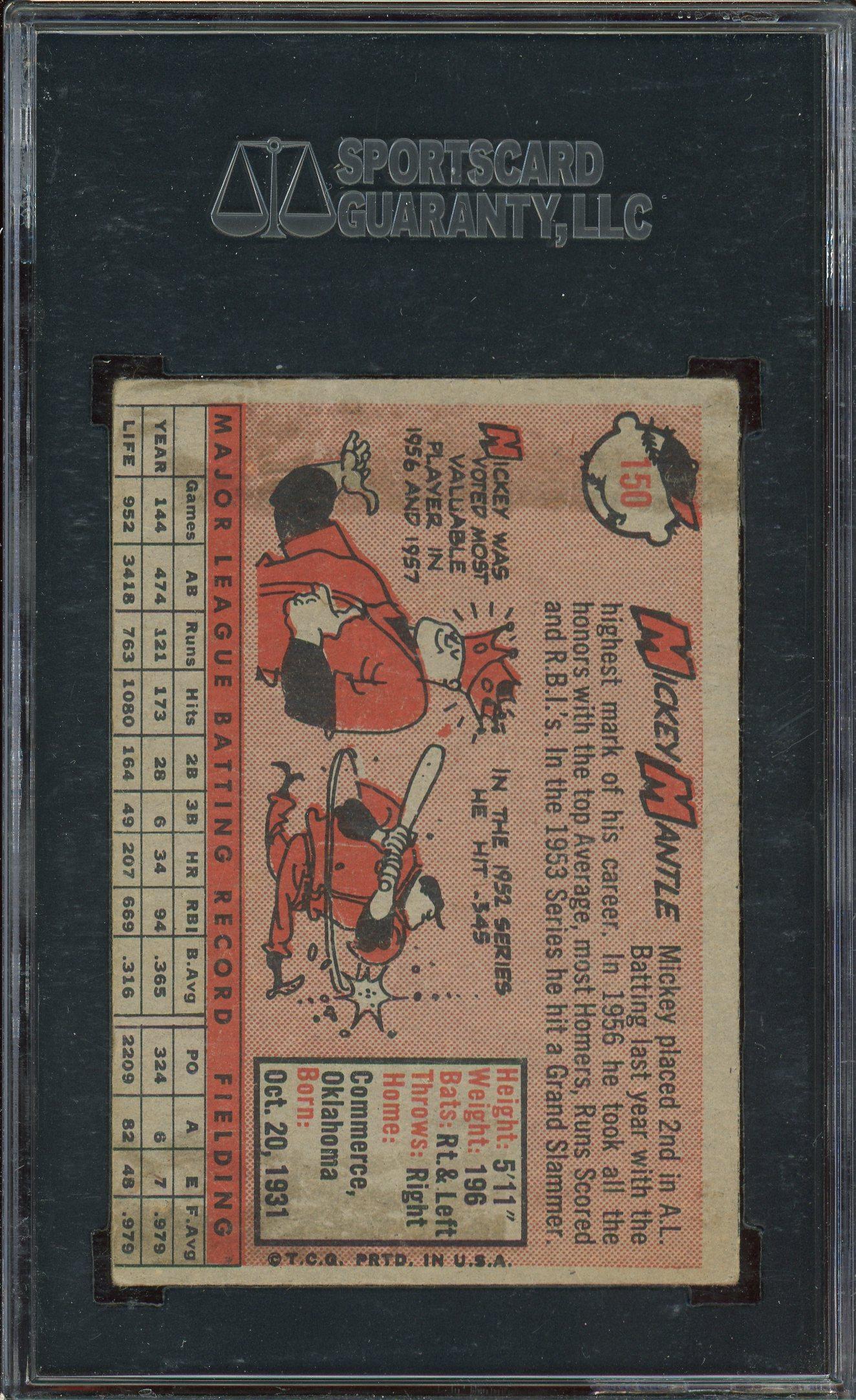 Mickey Mantle 1958 Topps Card #150 SGC 2