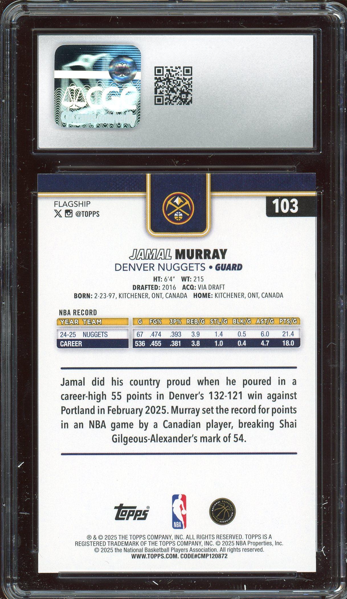 Jamal Murray 2025 Topps Gold Card #103 CGC Gem Mint 10!