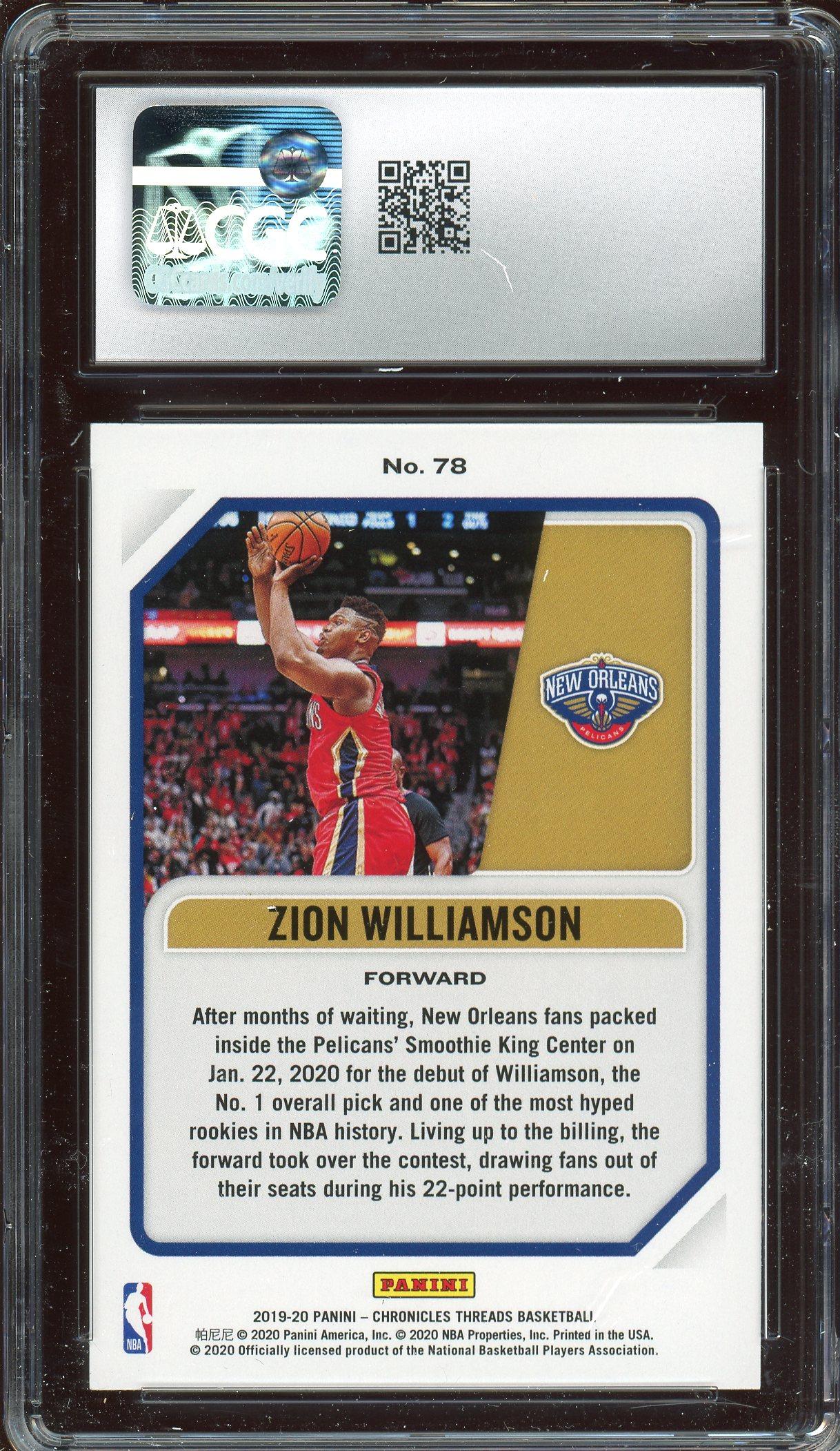 Zion Williamson 2019 Panini Chronicles Threads Rookie Card #78 CGC Gem Mint 10!