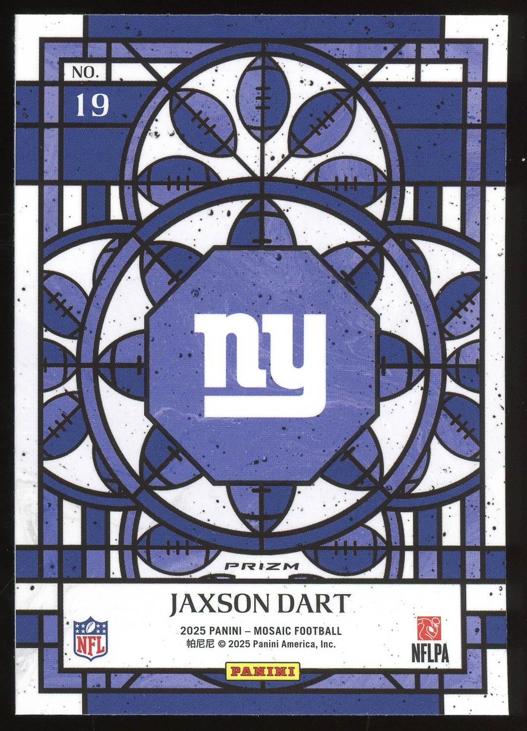 Jaxson Dart 2025 Panini Mosaic Stained Glass Rookie Card #19. Please see pictures for details on the condition of this card.