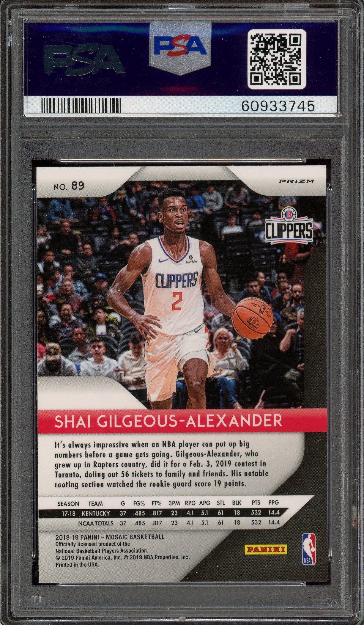 Shai Gilgeous Alexander 2018 Panini Prizm Mosaic Blue Rookie Card #89 PSA Gem Mint 10!