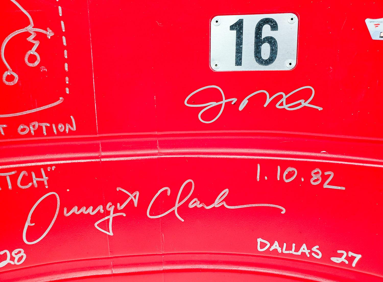 Joe Montana & Dwight Clark "The Catch" & Hand Drawn Play Sketch Signed #16 Seatback (Fanatics Certified)