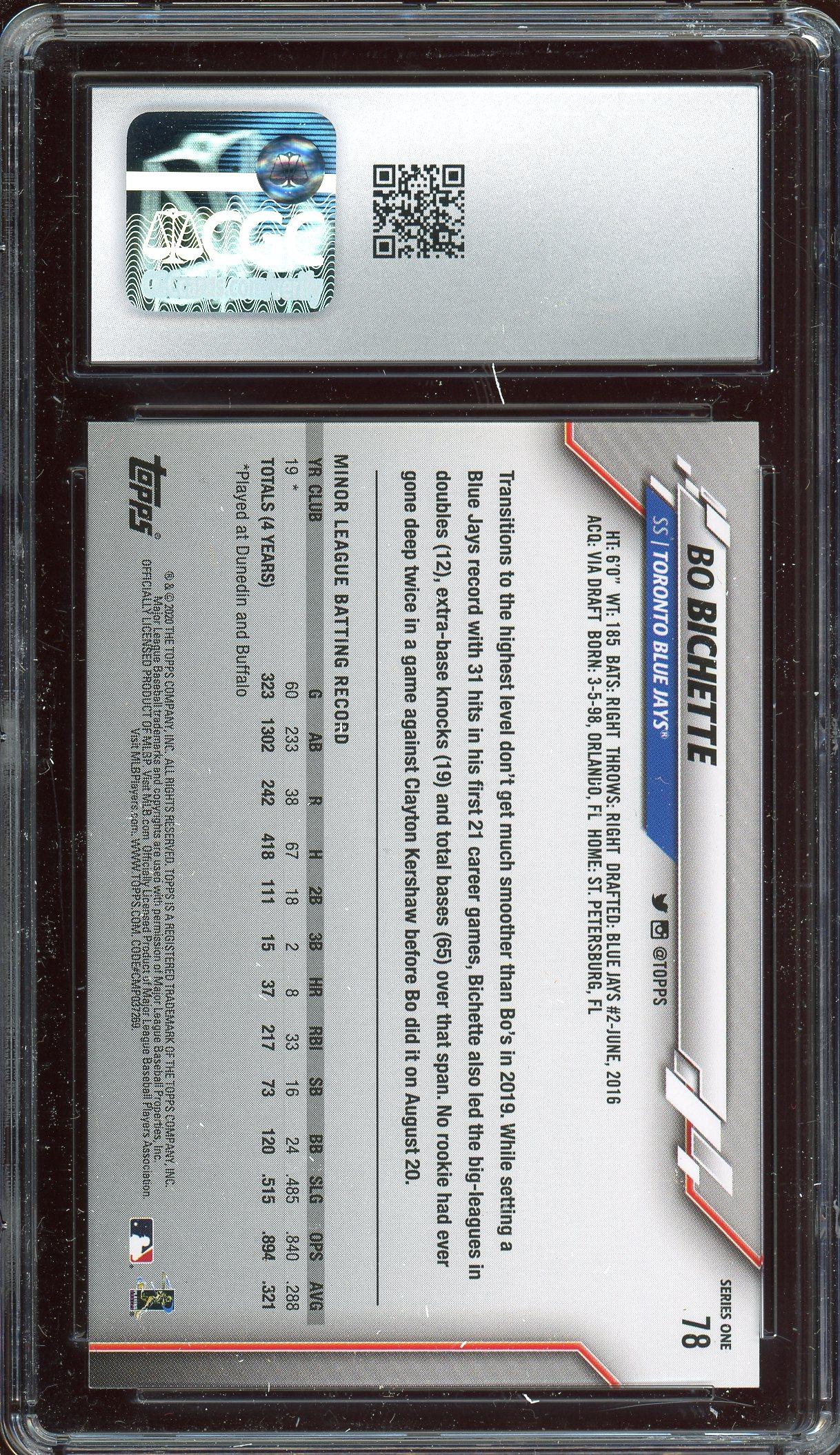 Bo Bichette 2020 Topps Rookie Card #78 CGC Gem Mint 10!