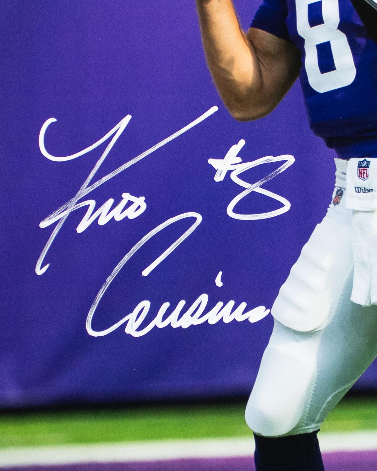 This autographed 16x20 photo has been personally hand-signed by Kirk Cousins of the Minnesota Vikings. This autograph is certified by Beckett Authentication Services (BAS) Certification. It comes with the numbered authentication hologram with a QR code that verifies the authentication on the Beckett website.