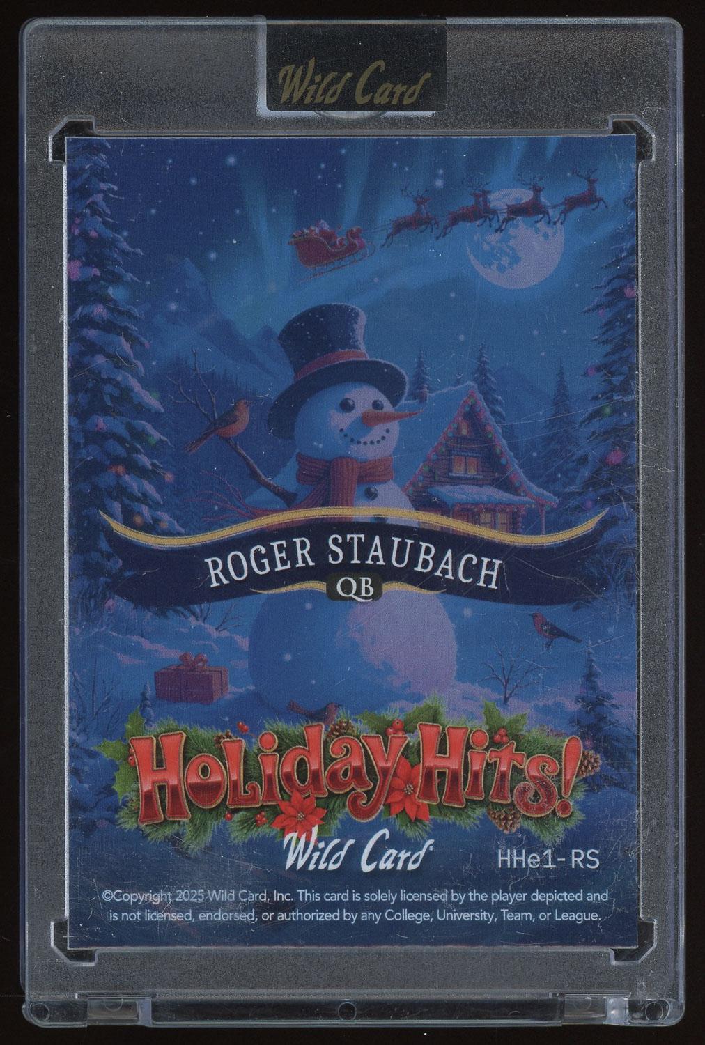 Roger Staubach 2025 Wild Card Holiday Hits Card 1/1. Please see pictures for details on the condition of this card.