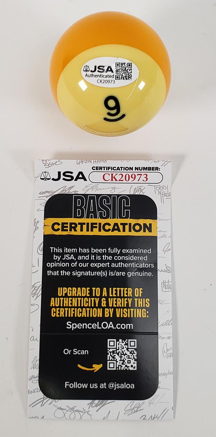 This autographed pool ball has been personally hand-signed by billiards legend, Jeanette Lee. This autograph is certified by James Spence Authentication (JSA). It comes with the numbered hologram and matching Certificate of Authenticity.