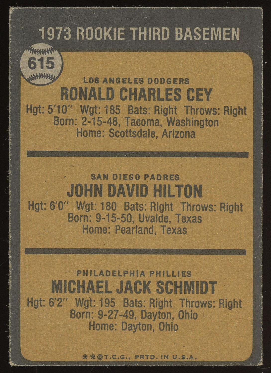 Mike Schmidt 1973 Topps Rookie Card #615. Please see pictures for details on the condition of this card.