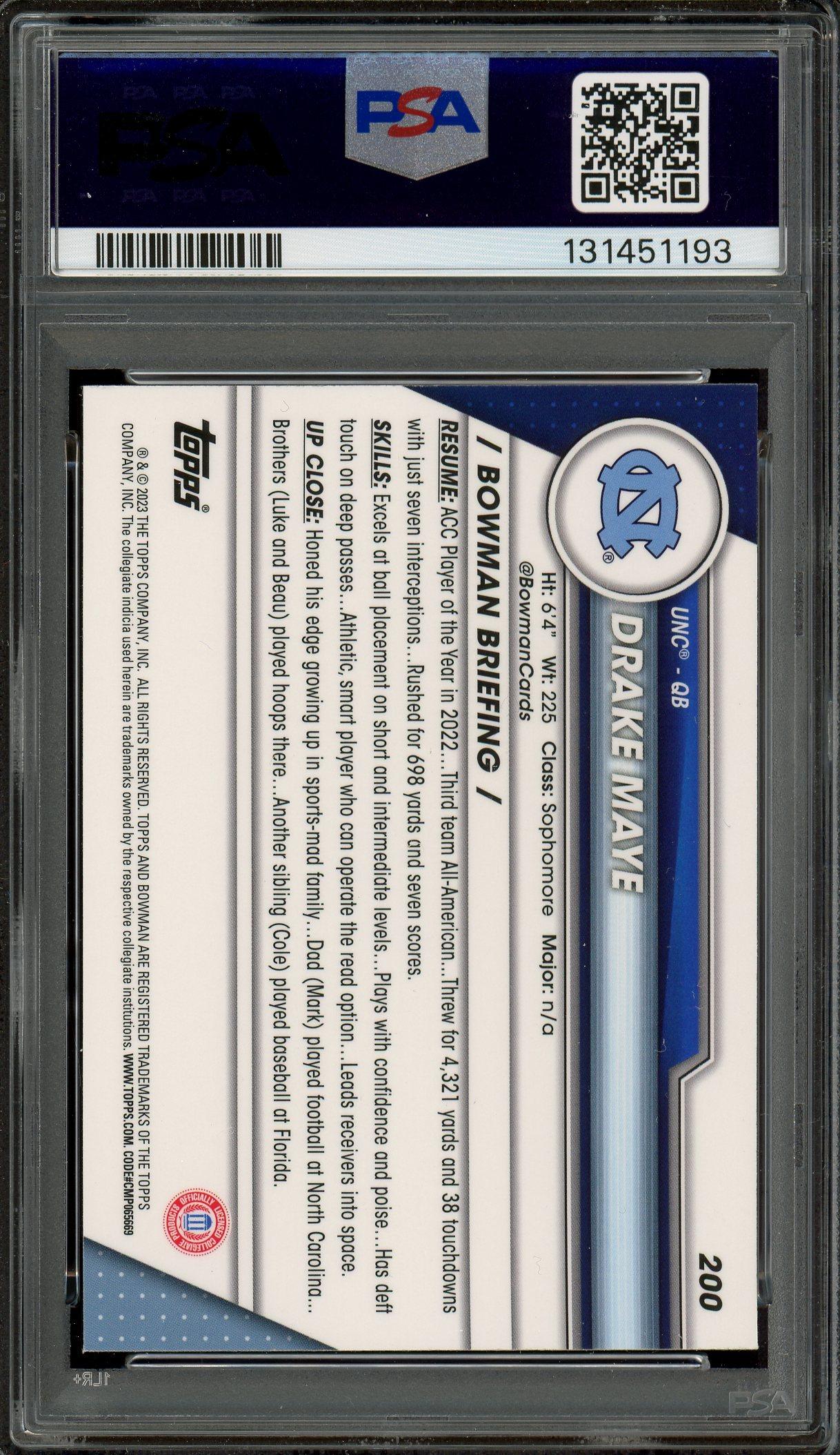 Drake Maye 2023 Bowman U Chrome 1st Bowman Card #200 PSA Gem Mint 10!