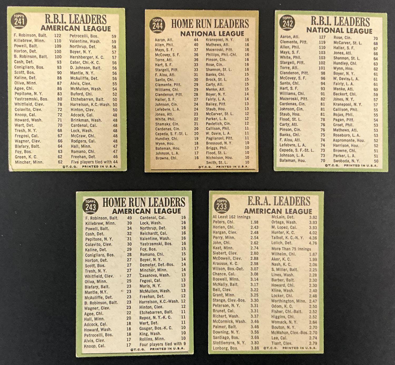 Lot of (5) 1967 Topps League Leaders Baseball Cards : Inc. Hank Aaron Home Run Leader!