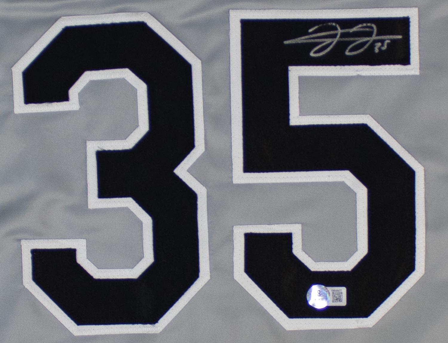 This autographed jersey has been personally hand-signed by Frank Thomas of the Chicago White Sox. This autograph is certified by Beckett Authentication Services (BAS) Witness Certification. That means that a Beckett representative was present when this item was signed. It comes with the numbered authentication hologram with a QR code that verifies the authentication on the Beckett website.