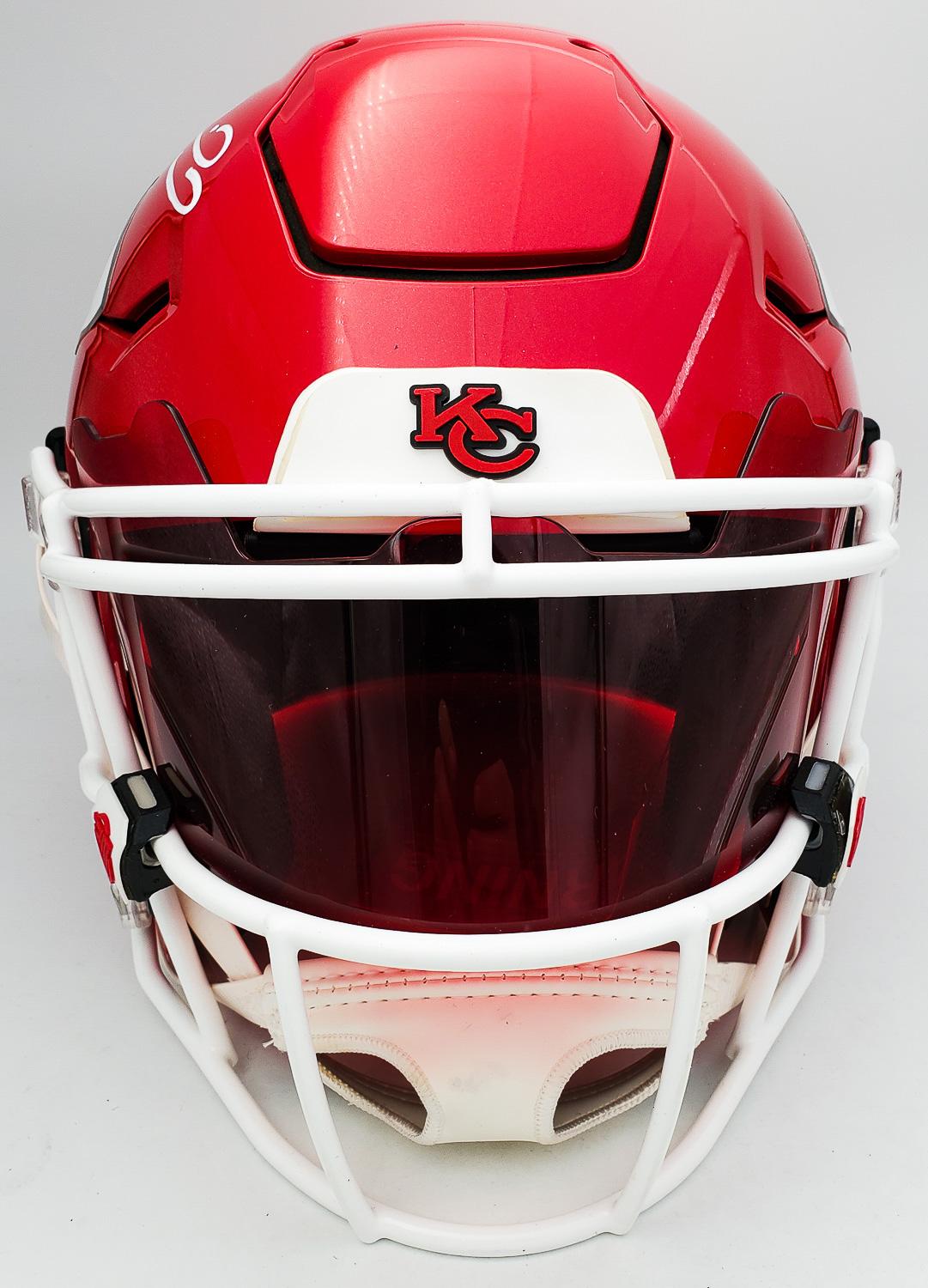 SpeedFlex Helmet: Patrick Mahomes Signed Full Size Kansas City Chiefs On Field Authentic SpeedFlex Helmet w/ Visor & Decals (Beckett Witness Hologram)