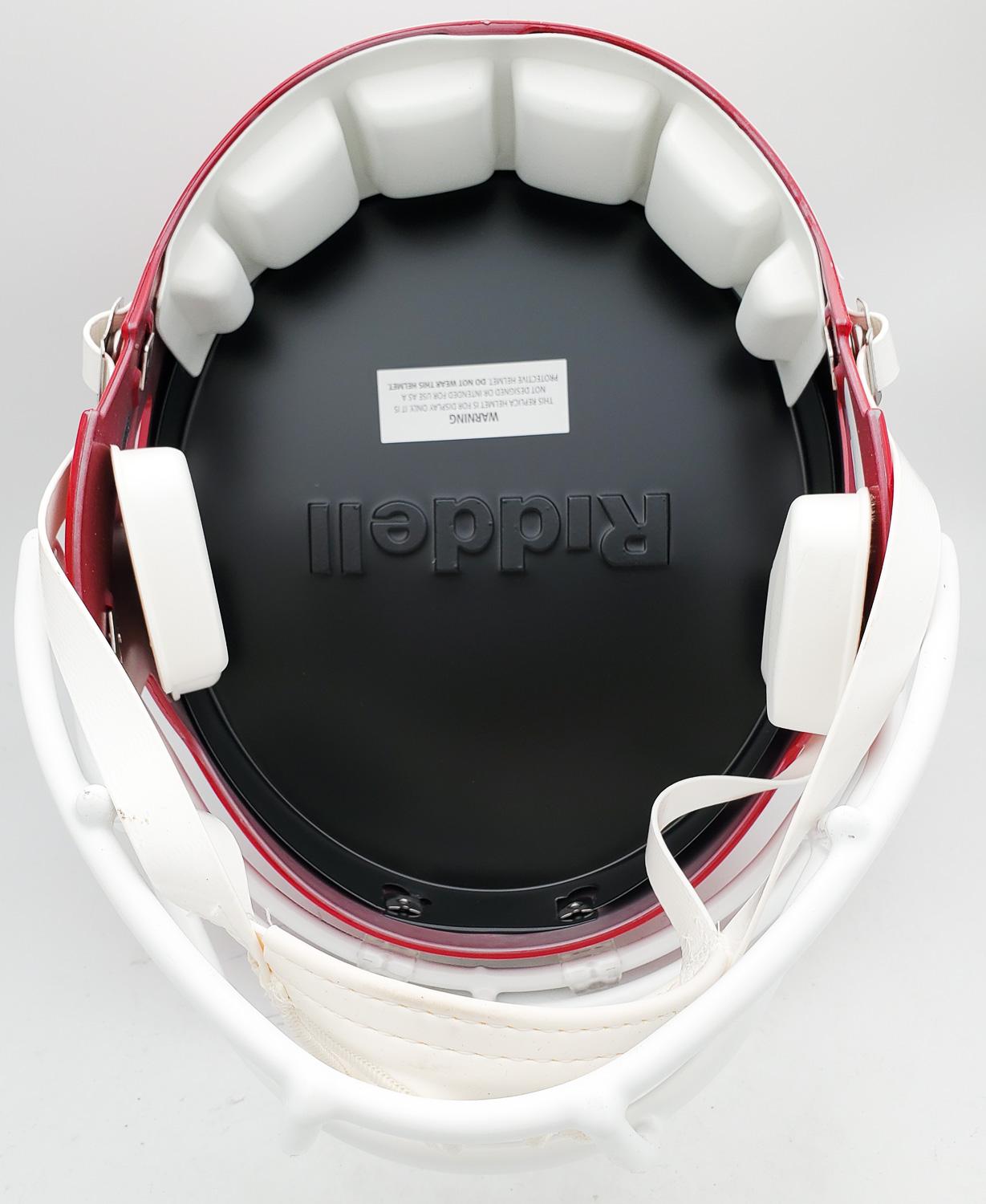 This autographed full size helmet has been personally hand-signed by Jim Kelly, Thurman Thomas & Andre Reed "Bills Dynasty" of the Buffalo Bills. This autograph is certified by Beckett Authentication Services (BAS) Witness Certification. That means that a Beckett representative was present when this item was signed. It comes with the numbered authentication hologram with a QR code that verifies the authentication on the Beckett website.