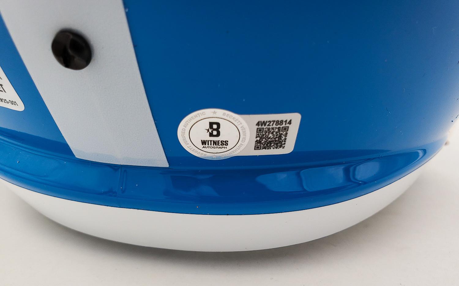 This autographed full size helmet has been personally hand-signed by Warren Moon "HOF 06" of the Houston Oilers. This autograph is certified by Beckett Authentication Services (BAS) Witness Certification. That means that a Beckett representative was present when this item was signed. It comes with the numbered authentication hologram with a QR code that verifies the authentication on the Beckett website.
