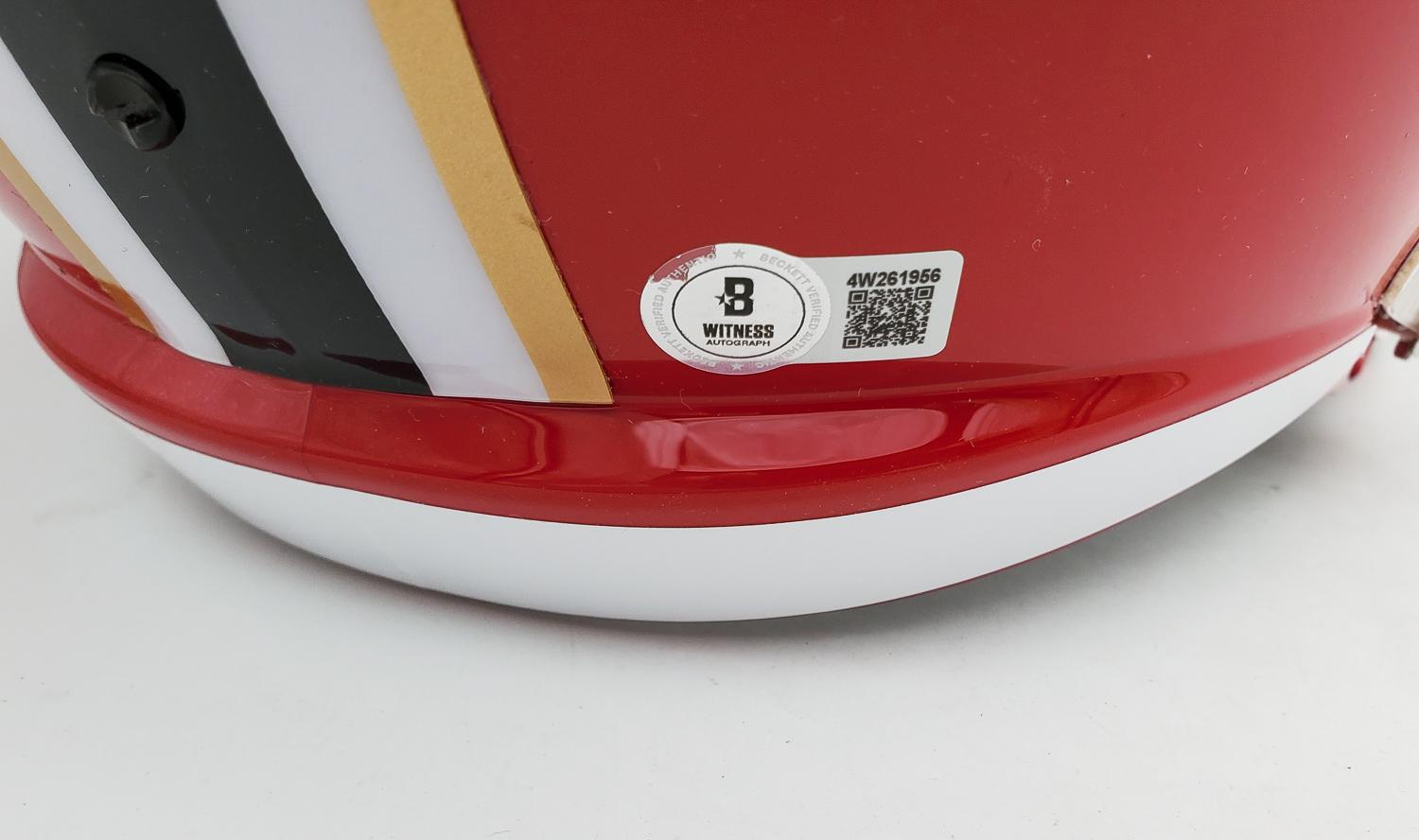 This autographed full size Riddell replica Speed helmet has been personally hand-signed by Bijan Robinson of the Atlanta Falcons. This autograph is certified by Beckett Authentication Services (BAS) Witness Certification. That means that a Beckett representative was present when this item was signed. It comes with the numbered authentication hologram with a QR code that verifies the authentication on the Beckett website. Please note, the hologram shifted slighty and left some behind, see the last picture.