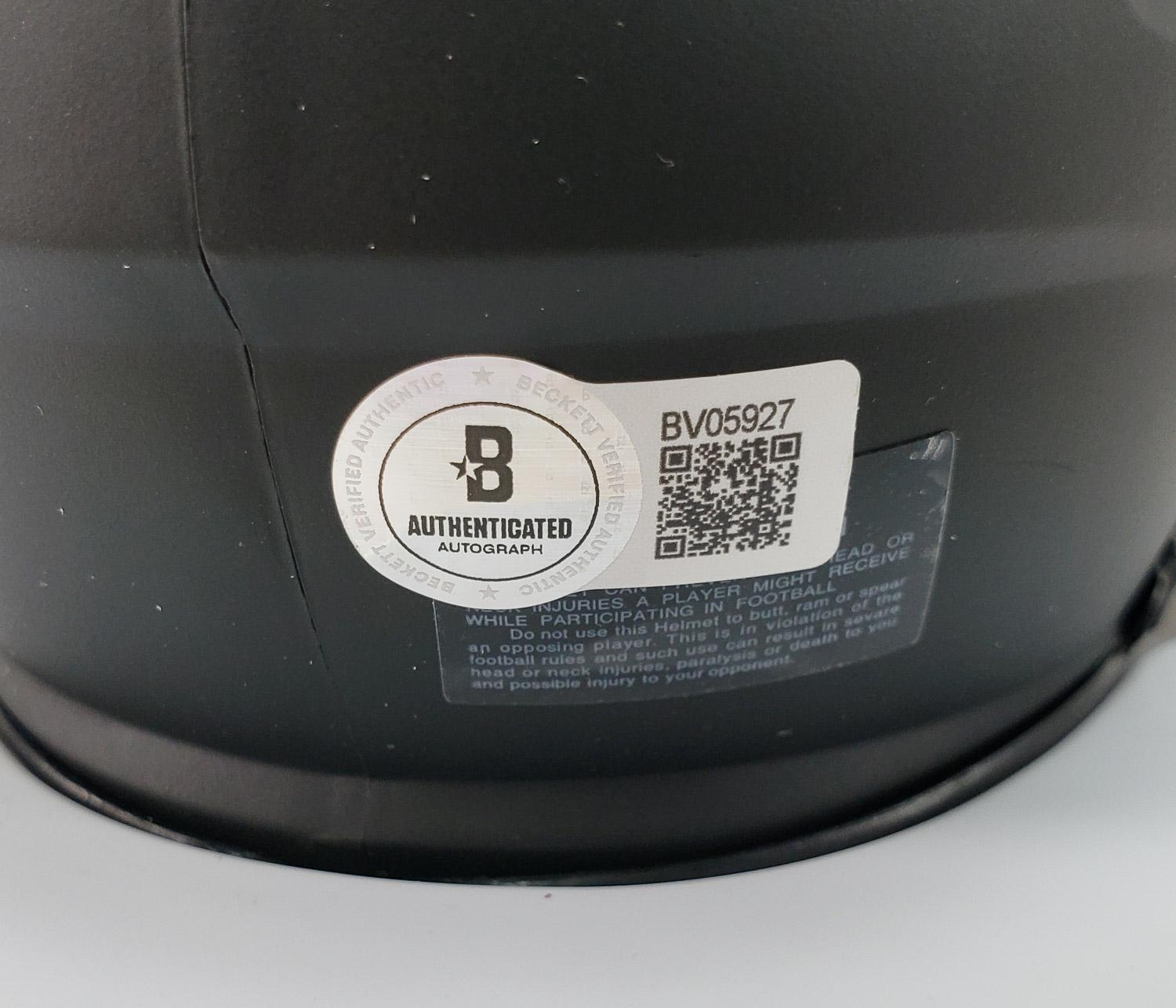 This autographed Riddell Speed mini helmet has been personally hand-signed by Devonta Smith of the Philadelphia Eagles. This autograph is certified by Beckett Authentication Services. It comes with the numbered authentication hologram with a QR code that verifies the authentication on the Beckett website. Stock images are used for this listing. The item you will receive will be of equal quality to the one pictured. The signature location may vary slightly.