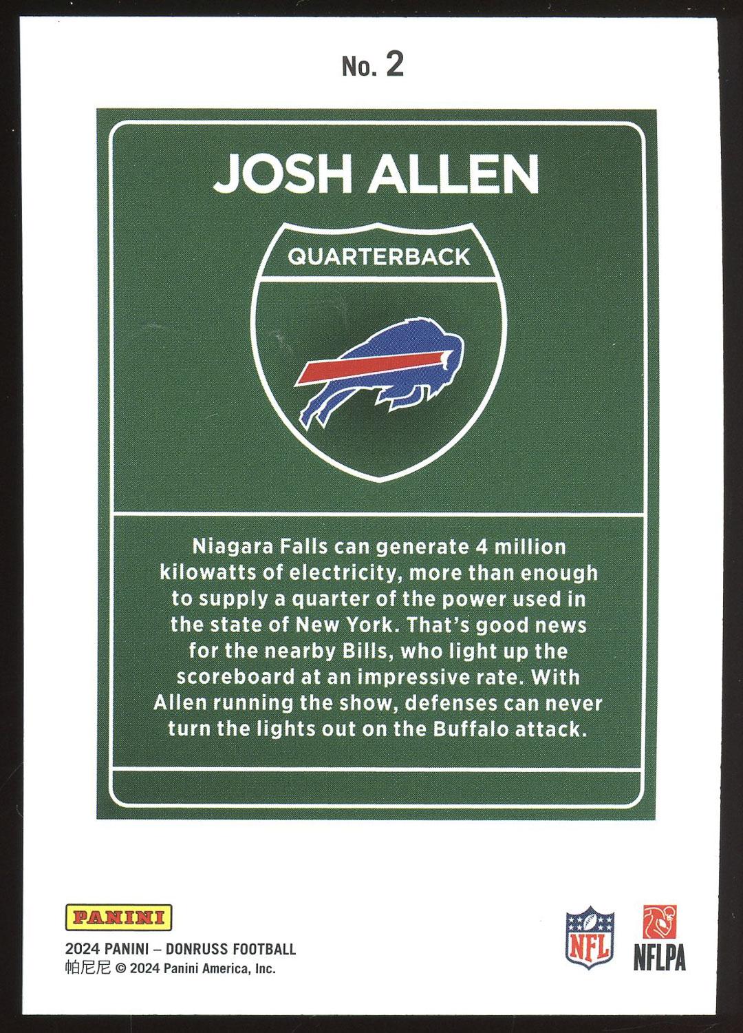 Josh Allen 2024 Panini Donruss Downtown Card #2. Please see pictures for details on the condition of this card.