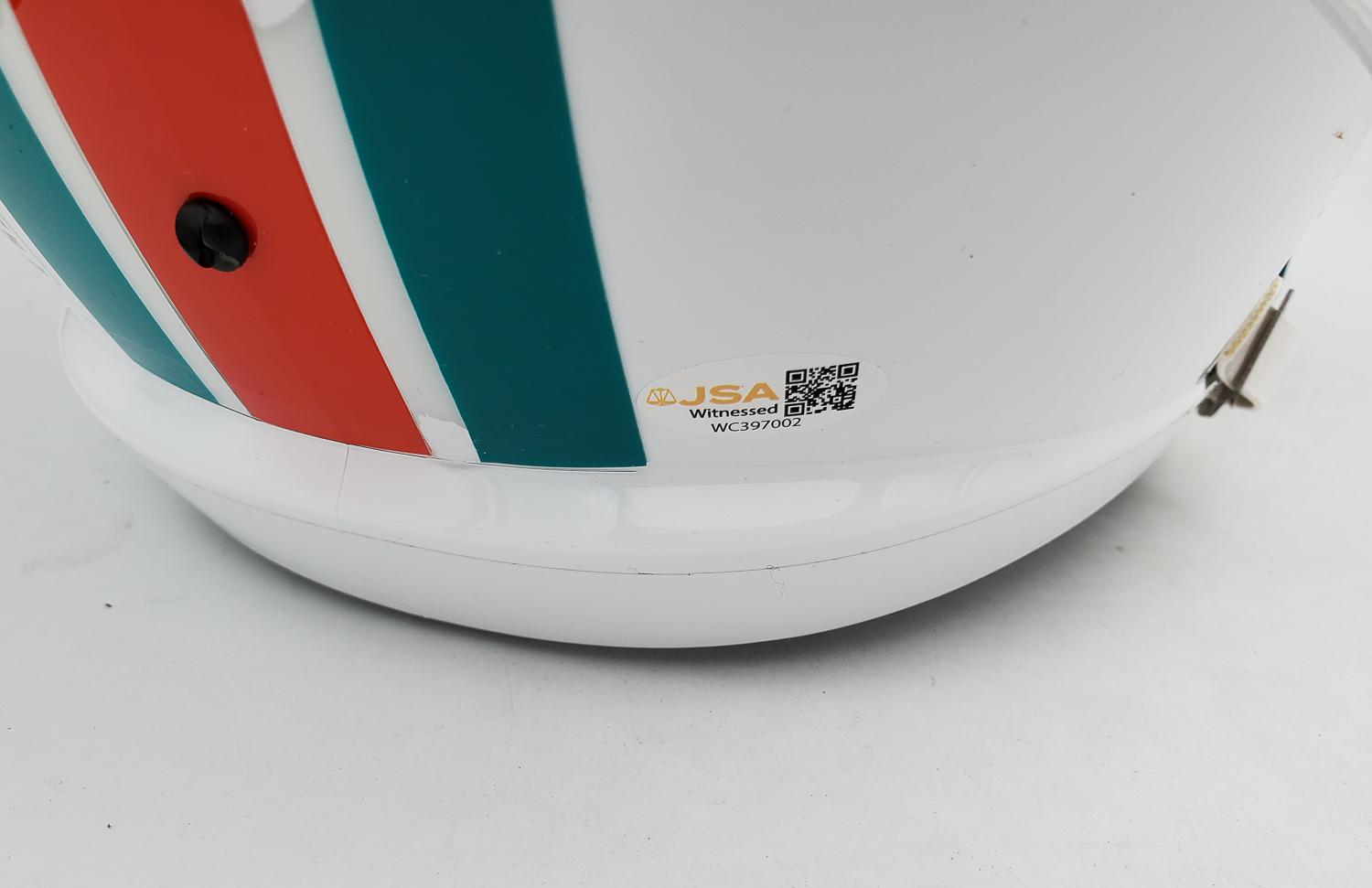 This autographed full size helmet has been personally hand-signed by Ricky Williams "Smoke Weed Everyday!" of the Miami Dolphins. This autograph is certified by James Spence Authentication's (JSA) Witnessed Protection Program. That means that a JSA representative was present when this item was signed. It comes with the numbered authentication hologram with a QR code that verifies the authentication on the JSA website.