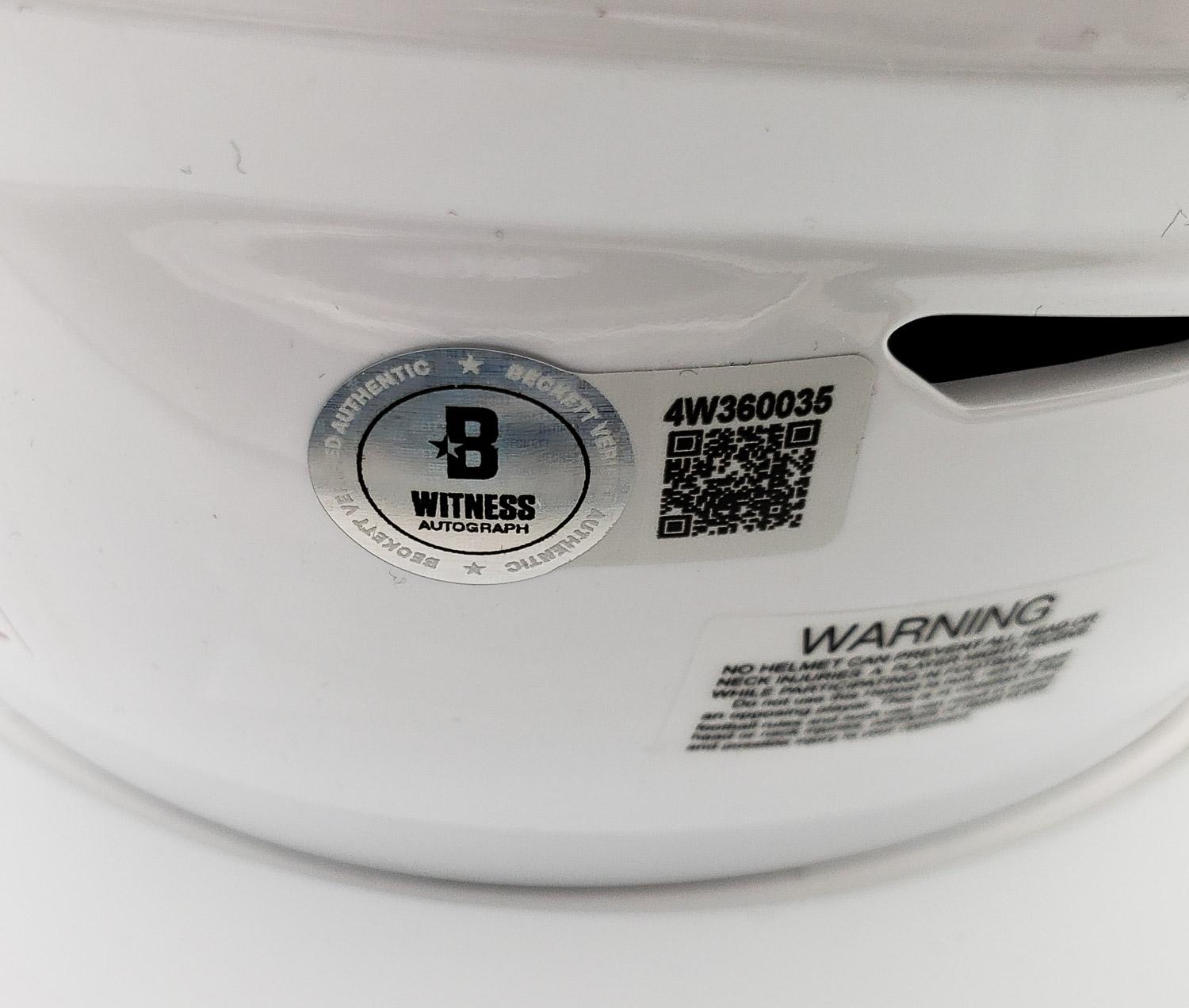 This autographed Riddell mid size MIDI helmet has been personally hand-signed by Bijan Robinson "Hook Em" of the Texas Longhorns. This autograph is certified by Beckett Authentication Services (BAS) Witness Certification. That means that a Beckett representative was present when this item was signed. It comes with the numbered authentication hologram with a QR code that verifies the authentication on the Beckett website. Stock images are used for this listing. The item you will receive will be of equal quality to the one pictured. The signature location may vary slightly.