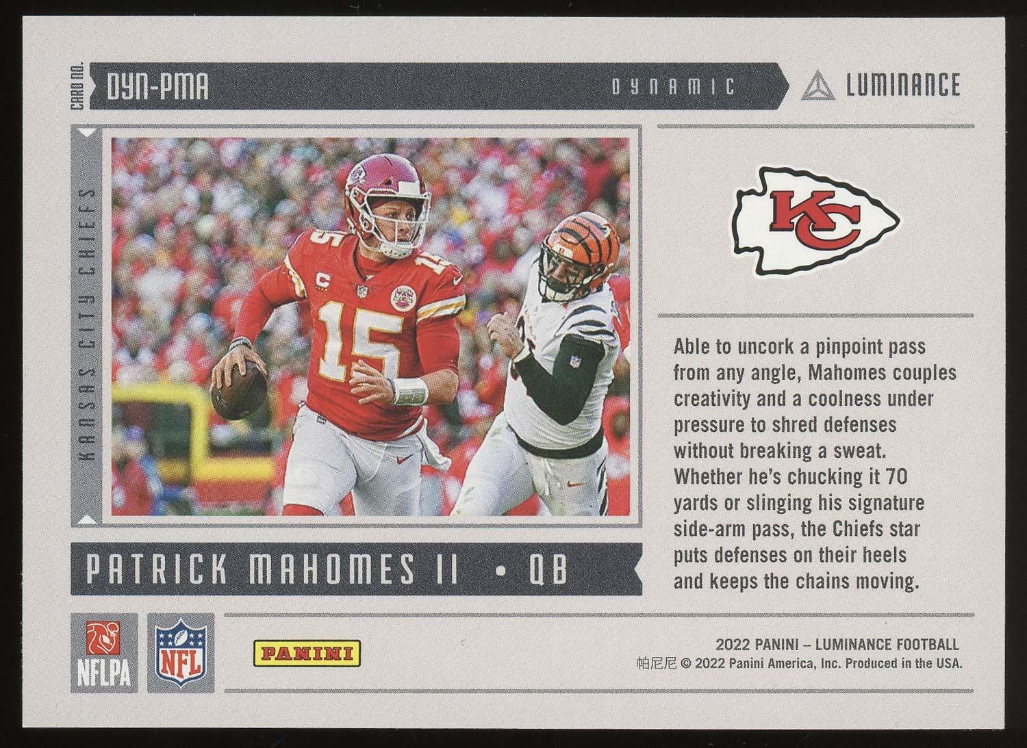 Patrick Mahomes 2022 Panini Luminance Dynamic Card