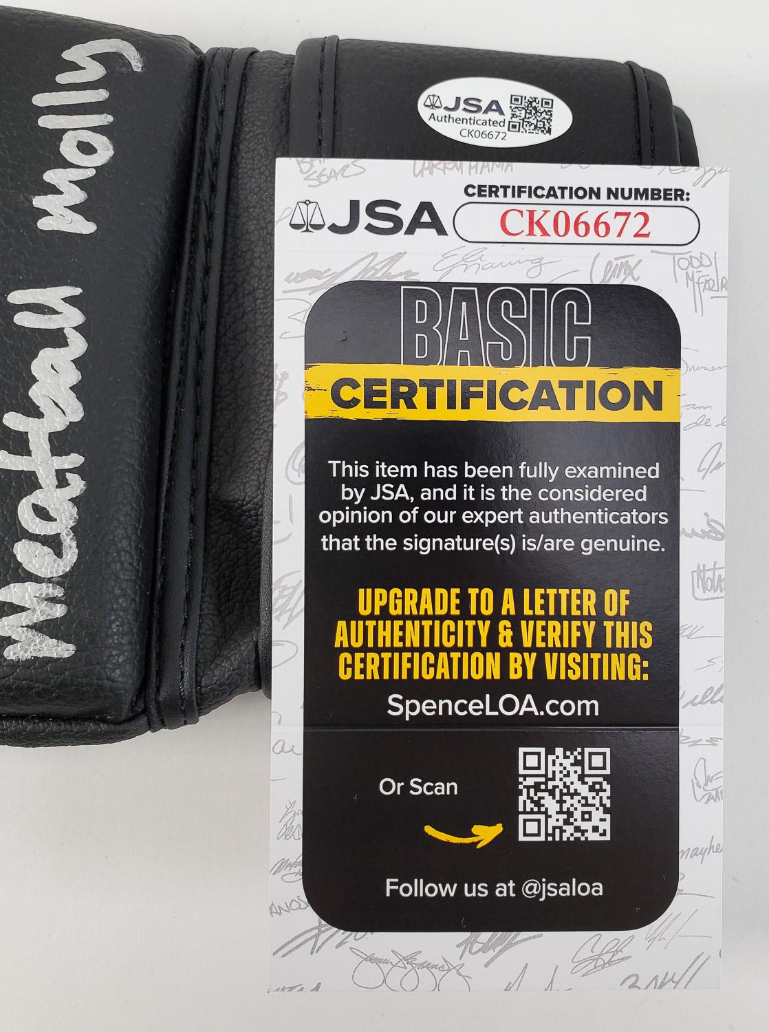 This autographed glove has been personally hand-signed by mma fighter, Molly McCann ("Meatball Molly" inscription). This autograph is certified by James Spence Authentication (JSA). It comes with the numbered hologram and matching Certificate of Authenticity.