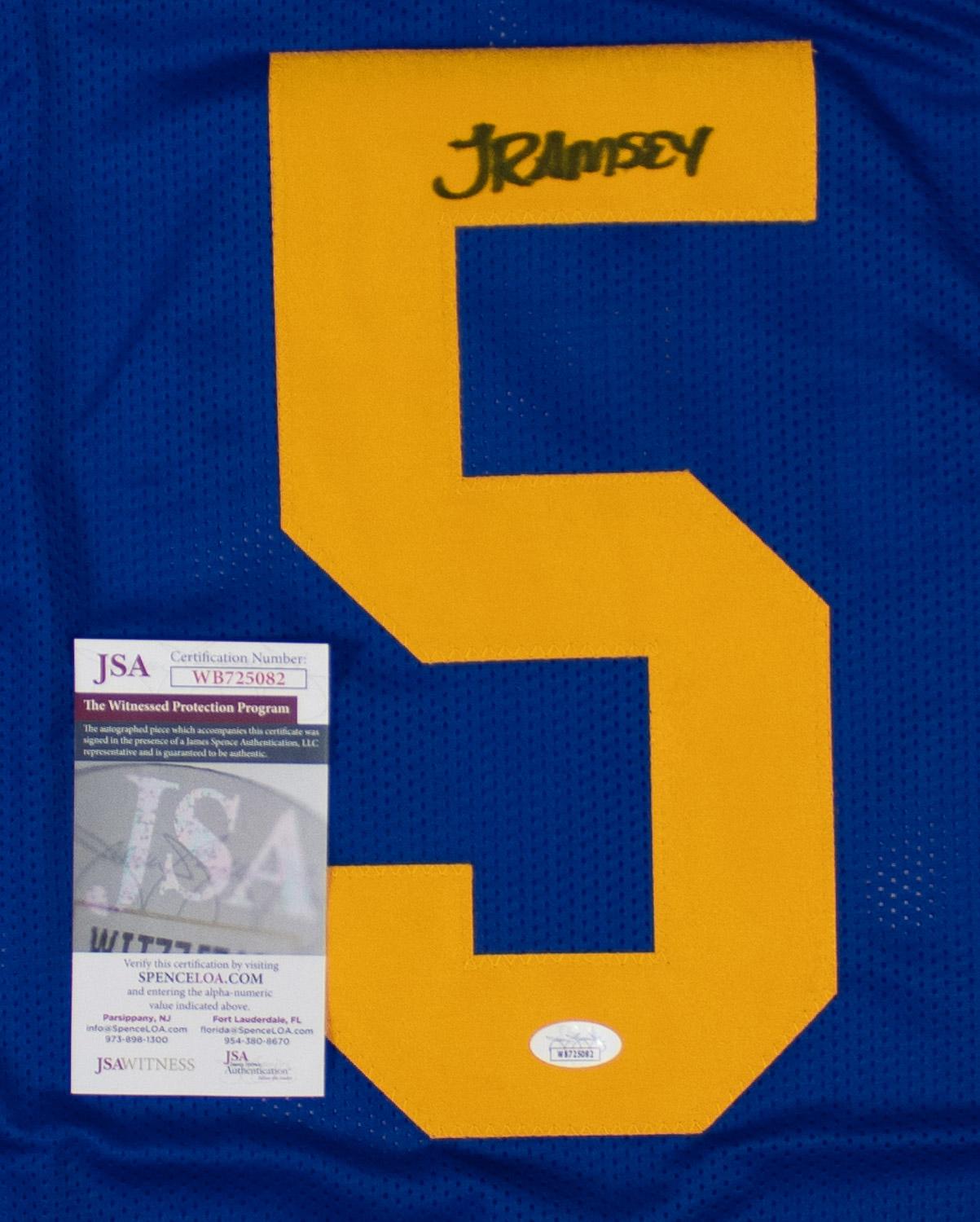 This autographed jersey has been personally hand-signed by Jalen Ramsey of the Los Angeles Rams. This autograph is certified by James Spence Authentication's (JSA) Witnessed Protection Program. That means that a JSA representative was present when this item was signed. It comes with the numbered hologram and matching Certificate of Authenticity.