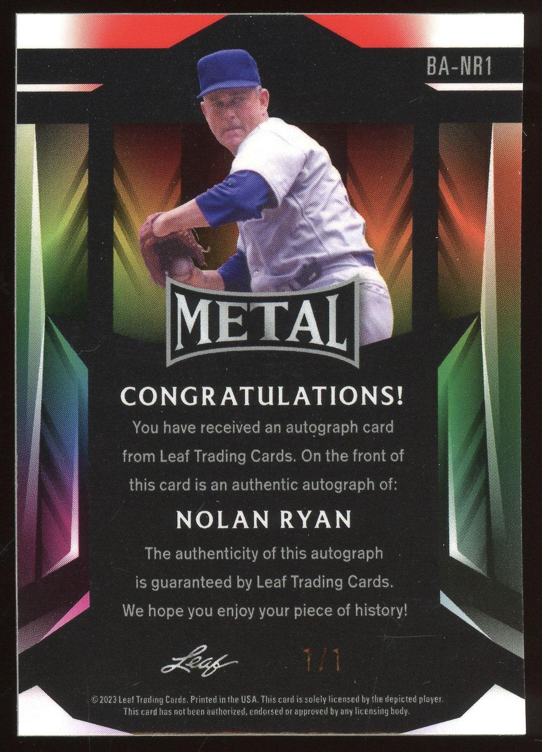 Nolan Ryan 2023 Leaf Metal Red White Blue Auto Card 1/1
