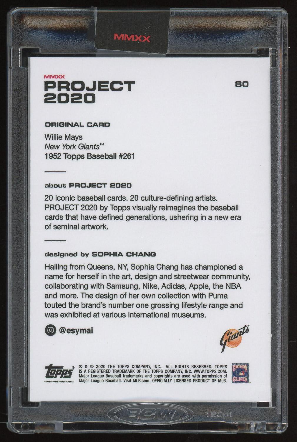 Willie Mays 2020 Topps Project 2020 Card #80. Please see pictures for details on the condition of this card.