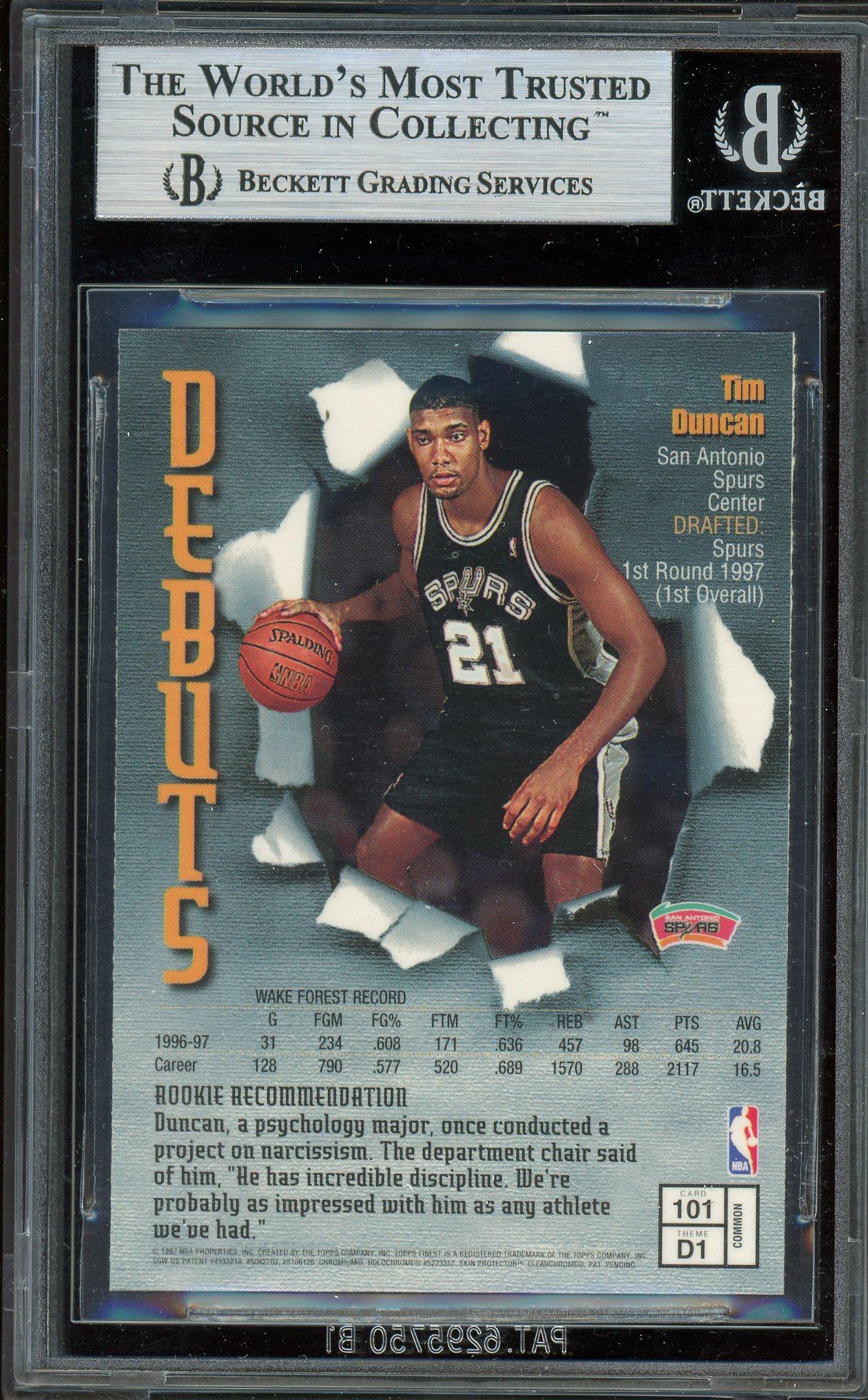 Tim Duncan 1997 Topps Finest Rookie Card #101 B BGS 9