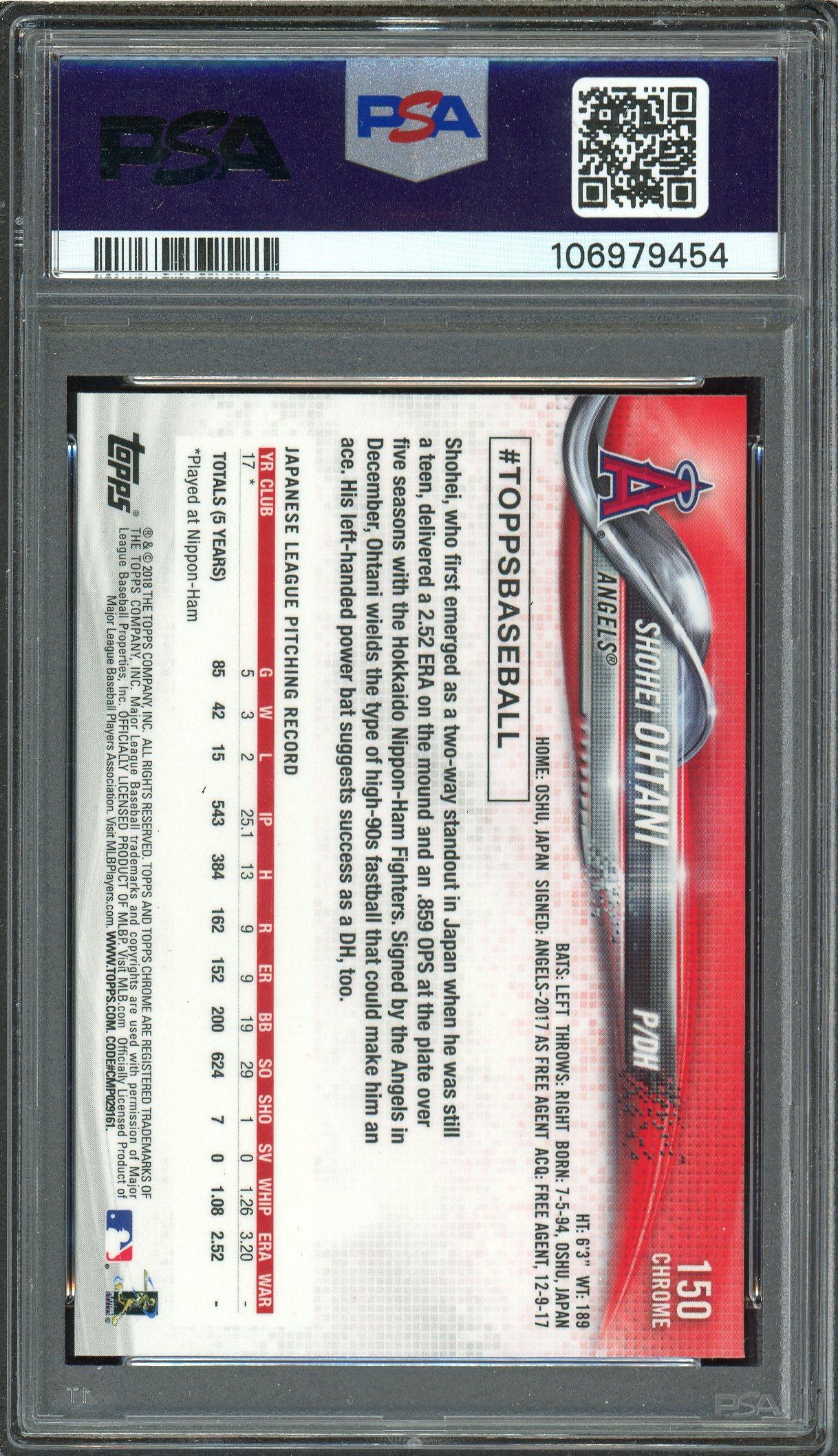 Shohei Ohtani 2018 Topps Chrome Pitching Rookie Card #150 PSA Gem Mint 10!