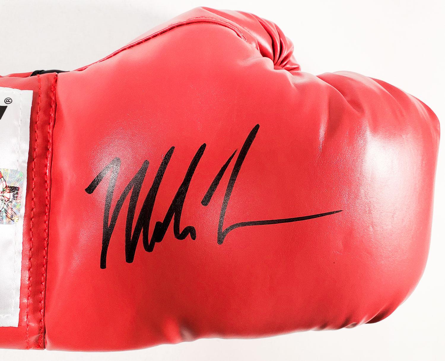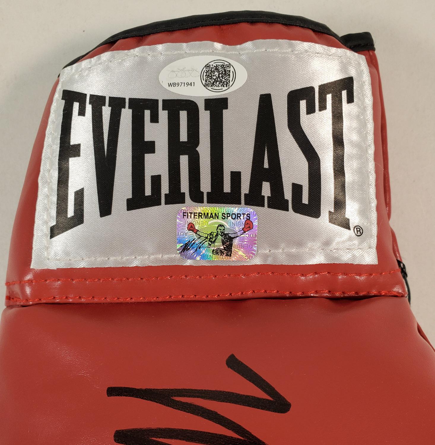 This autographed Everlast boxing glove has been personally hand-signed by Mike Tyson. This autograph is certified by James Spence Authentication's (JSA) Witnessed Protection Program. That means that a JSA representative was present when this item was signed. It comes with the numbered authentication hologram with a QR code that verifies the authentication on the JSA website.