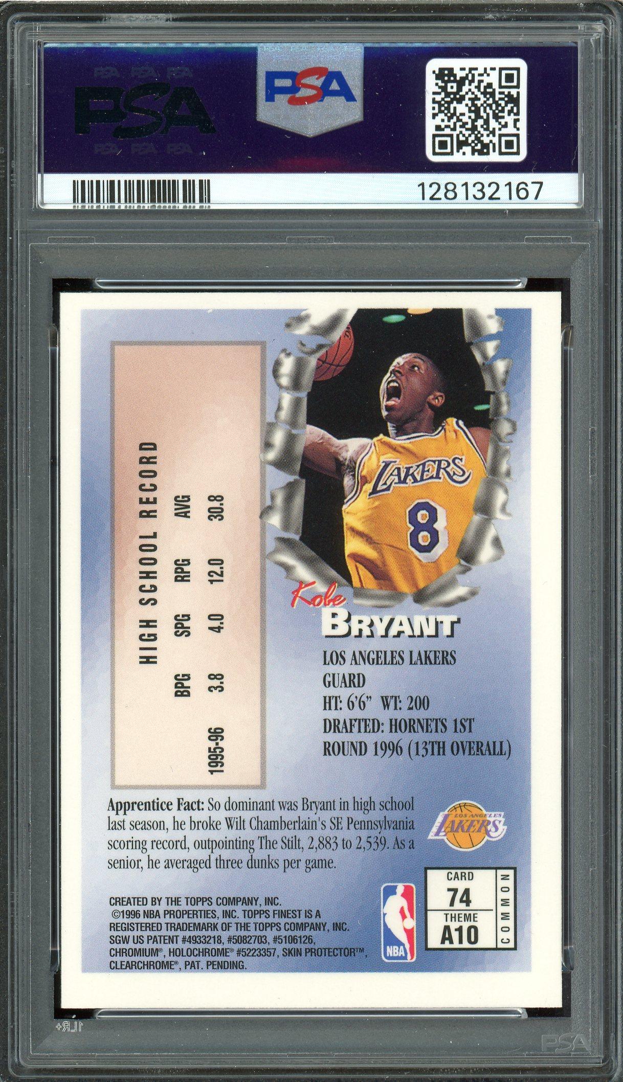 Kobe Bryant 1996 Topps Finest w/Coating Rookie Card PSA 8