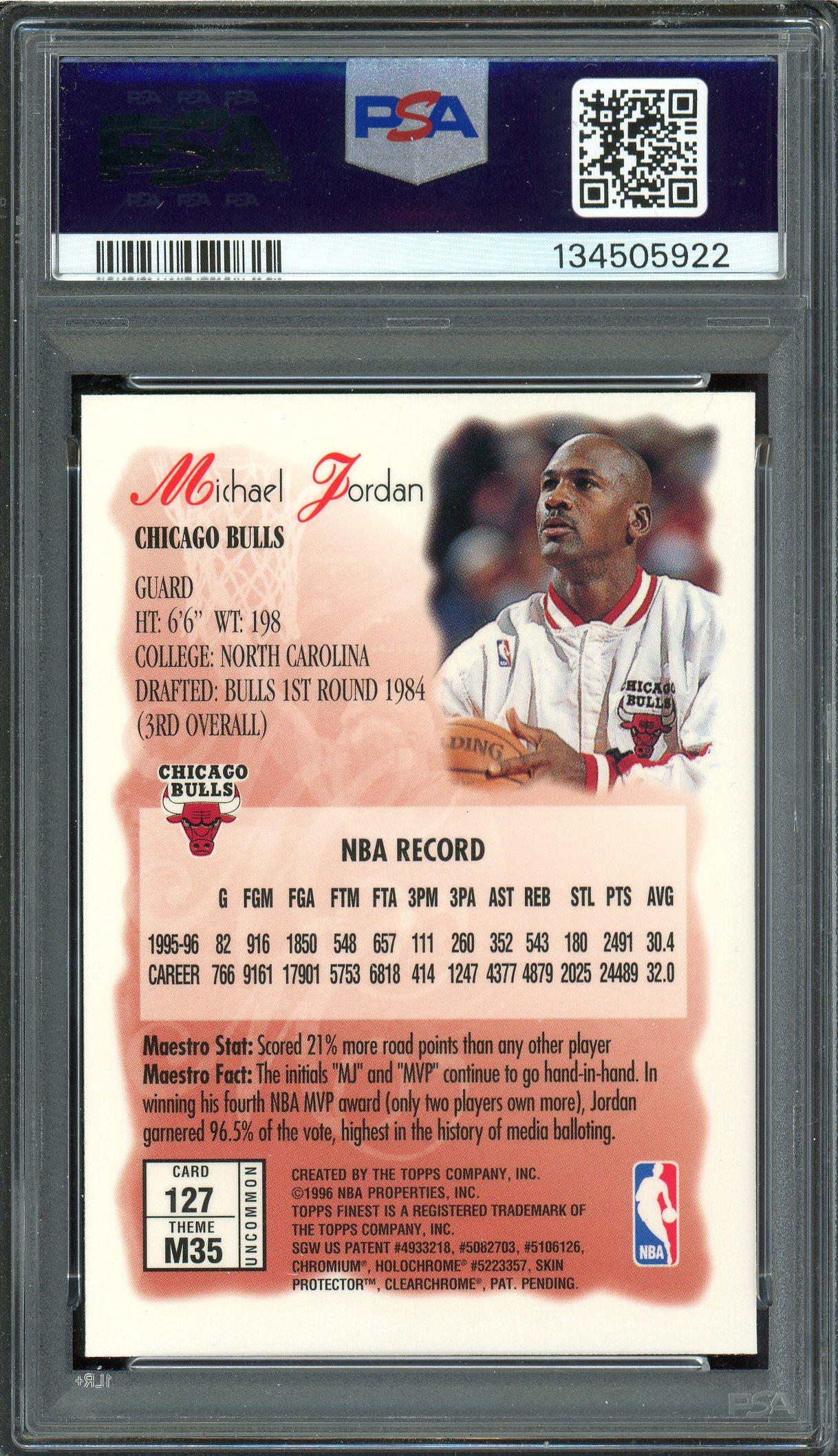 Michael Jordan 1996 Topps Finest w/Coating Card #127 PSA 8