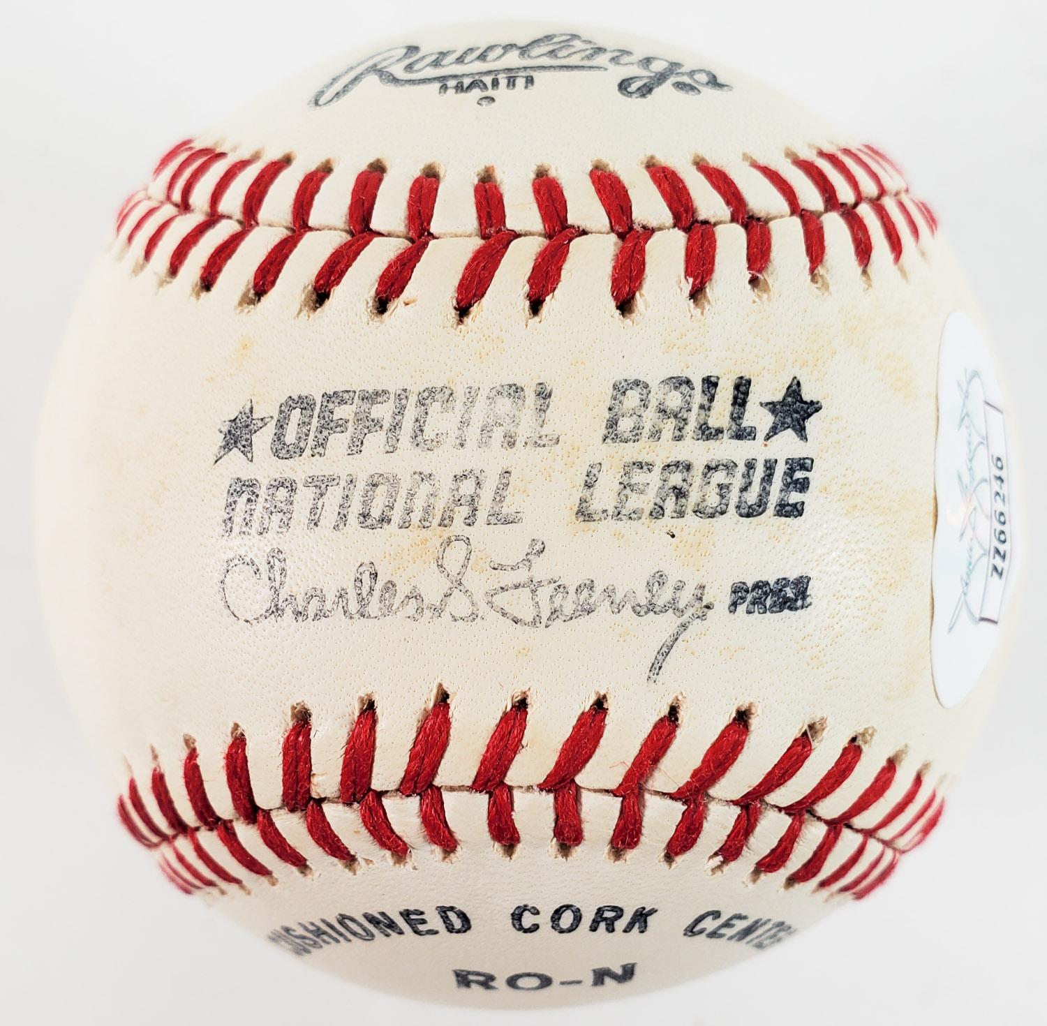 This autographed baseball has been personally hand-signed by Willie Mays of the San Francisco Giants. This autograph is certified by James Spence Authentication (JSA). It comes with the numbered hologram and matching Letter of Authenticity. Please see all photos regarding the condition of this baseball.