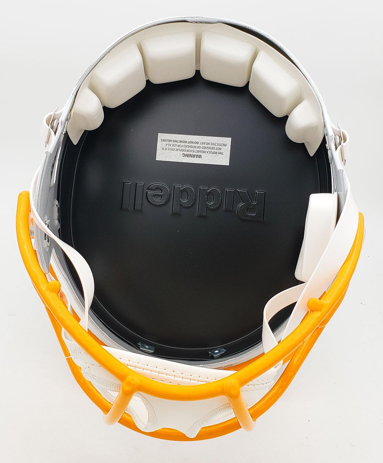 This autographed full size Riddell Speed helmet has been personally hand-signed by Justin Herbert "2020 NFL ROY" of the Los Angeles Chargers. This autograph is certified by Beckett Authentication Services (BAS) Witness Certification. That means that a Beckett representative was present when this item was signed. It comes with the numbered authentication hologram with a QR code that verifies the authentication on the Beckett website.
