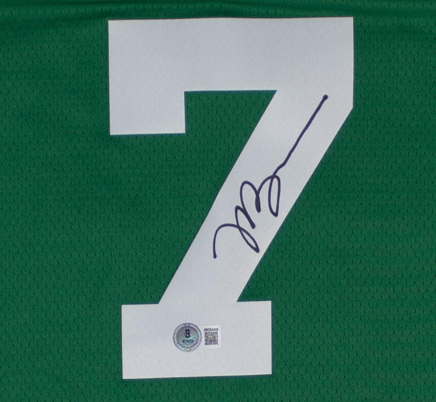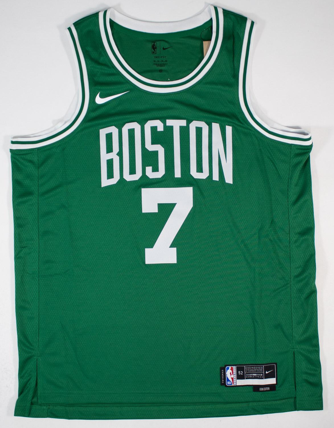This autographed Nike jersey has been personally hand-signed by Jaylen Brown of the Boston Celtics. This autograph is certified by Beckett Authentication Services (BAS) Witness Certification. That means that a Beckett representative was present when this item was signed. It comes with the numbered authentication hologram with a QR code that verifies the authentication on the Beckett website.